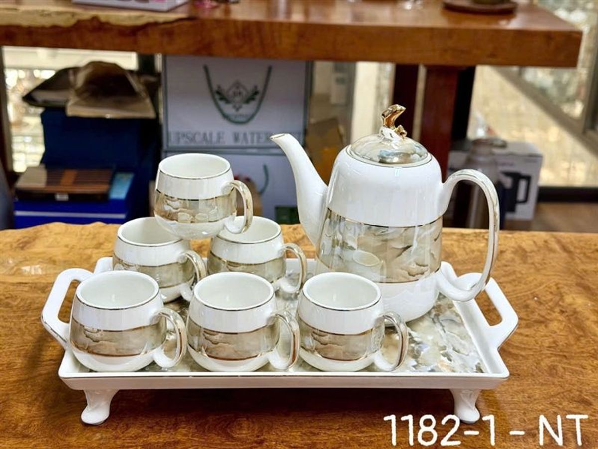 Bộ trà sứ phong cách Bắc Âu cao cấp kèm khay sứ mạ vàng sang chảnhhh. Trang trí phòng khách, thưởng trà, làm quà tặng...