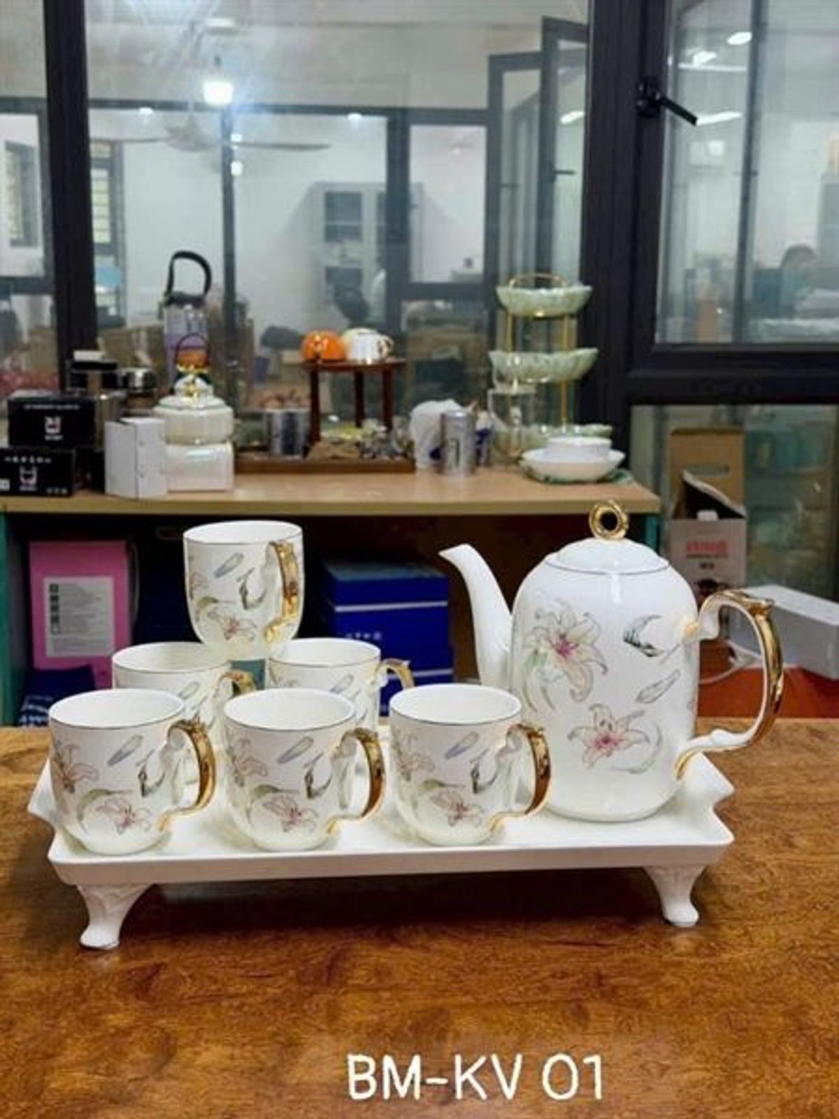 Bộ bình ly kèm khay sứ cao cấp gồm 1 bình, 6 ly và 1 khay sứ