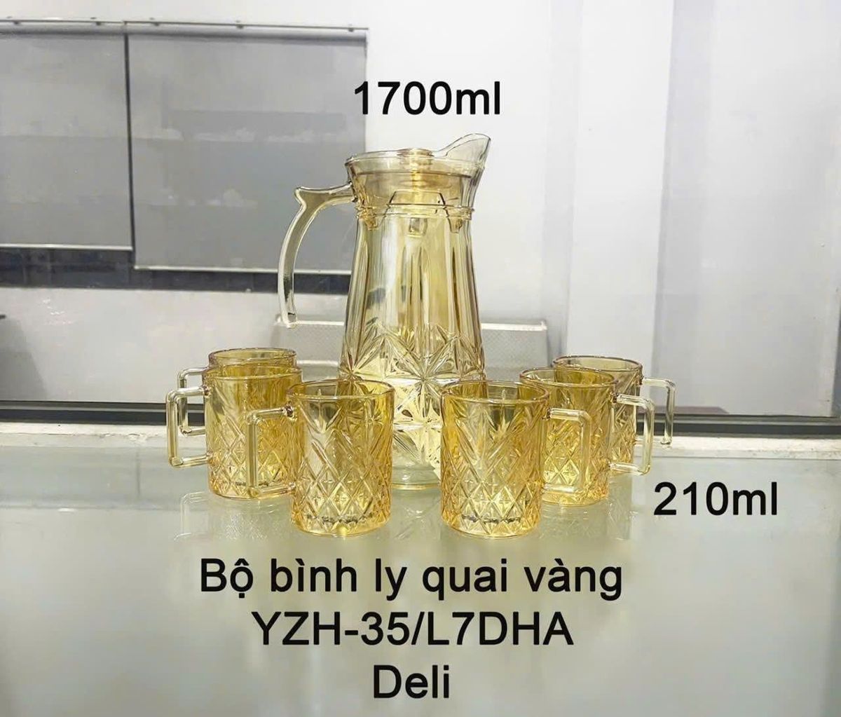 BỘ BÌNH THUỶ TINH KÈM 6 LY QUAI VÀNG YZH-35L7DHA (T6) giá sỉ - giá bán buôn