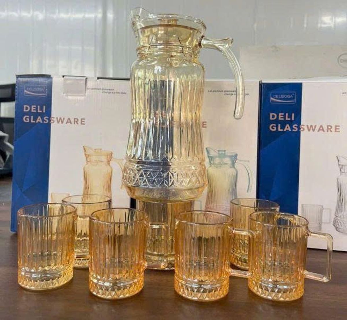 BỘ BÌNH THUỶ TINH VÀNG KÈM 6 LY QUAI YZH-40L7DHA (T6) giá sỉ - giá bán buôn