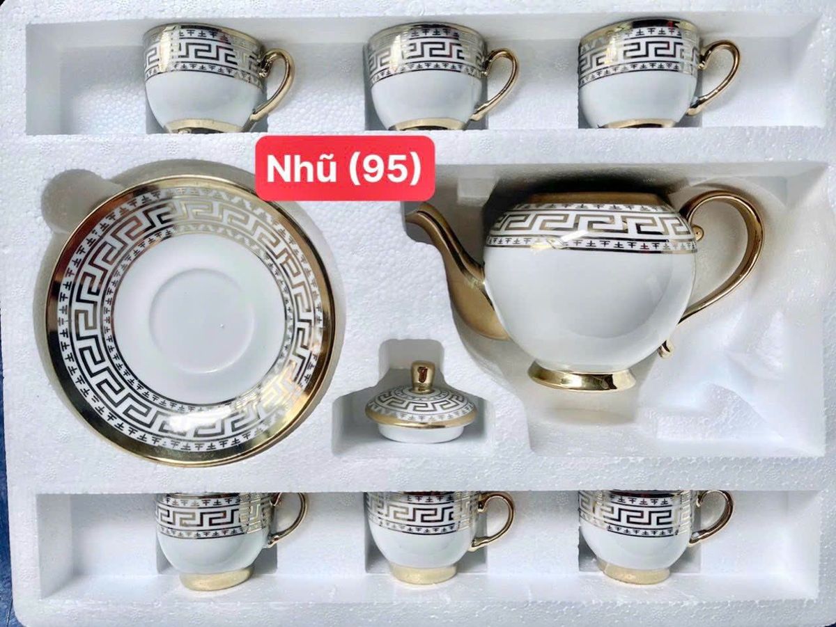 BỘ BÌNH TRÀ 6 LY HOA VĂN NHỦ VÀNG HOÀNG GIA