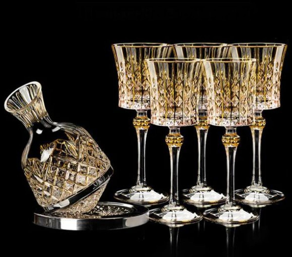 Bộ sản phẩm gồm 6 ly, 1 bình đáy vàng