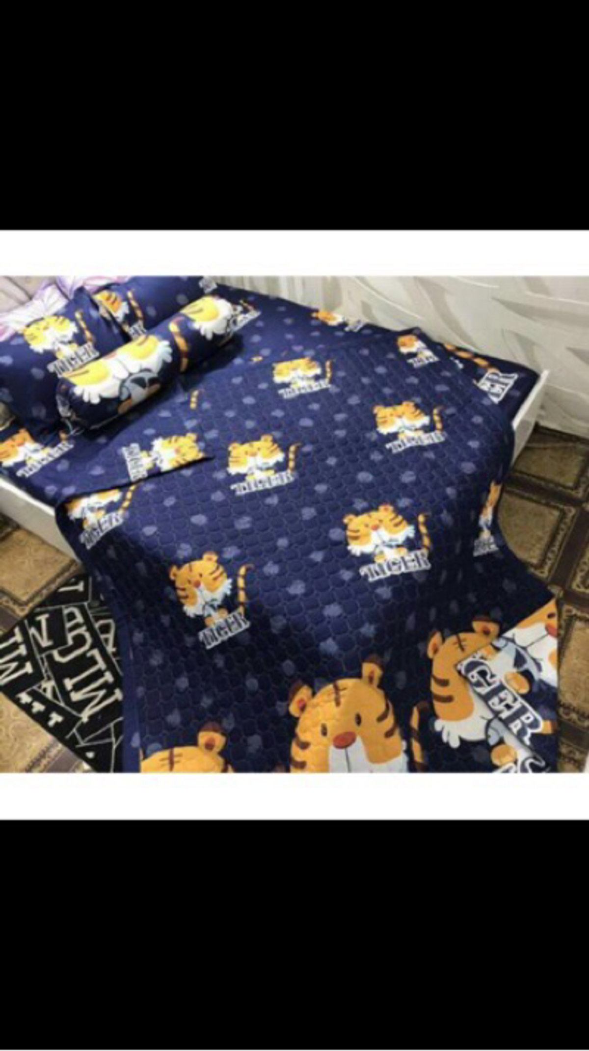Set gồm ga chun, hai vỏ gối đầu, một vỏ chăn không chần lồng được ruột, một vỏ gối ôm 70*100cm