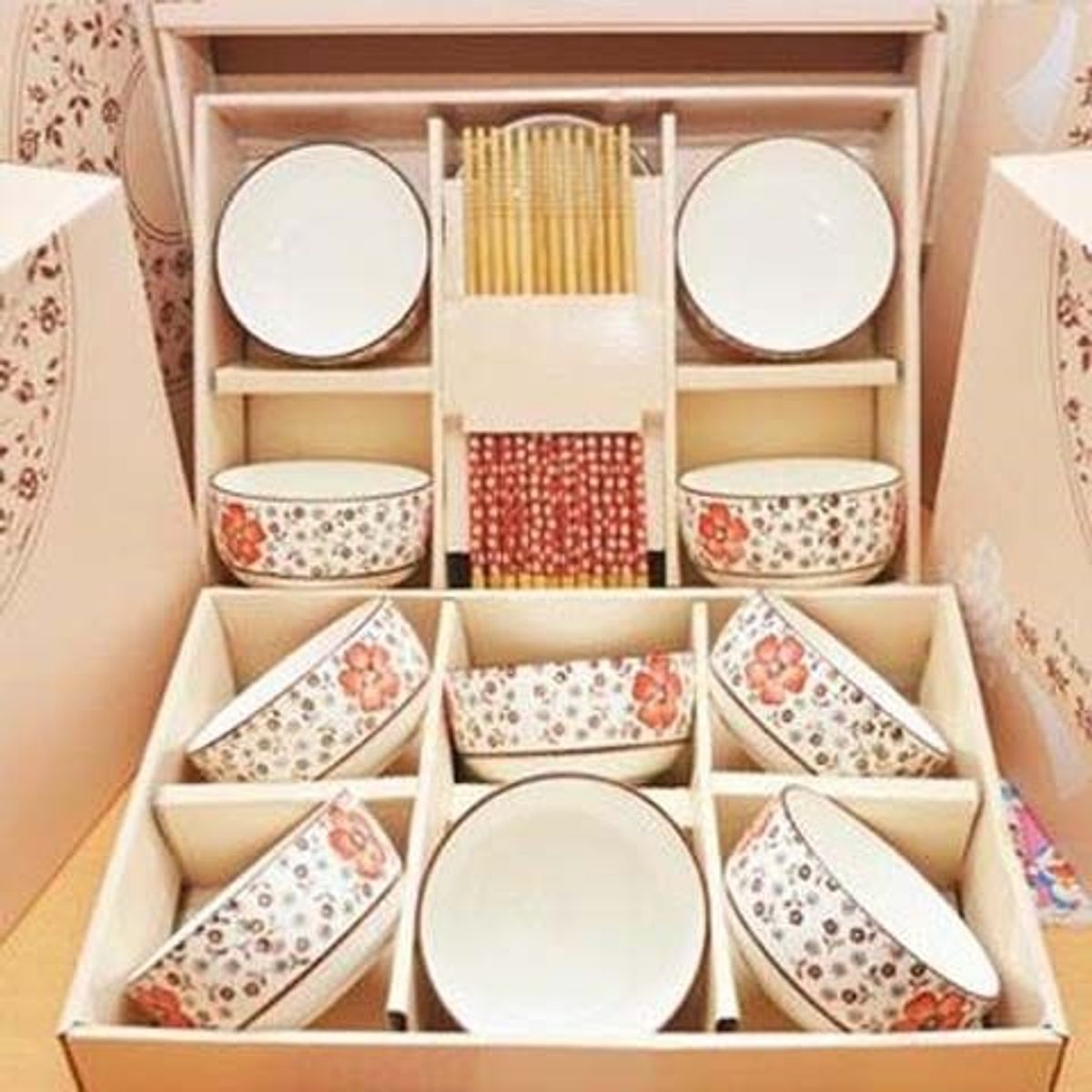 Bộ chén đũa nhật hoa văn 6 chén - 6 đôi đũa giá sỉ - giá bán buôn