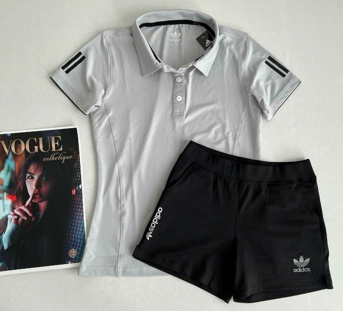Bộ cổ trụ nữ + quần đùi thun 1lớp logo thêu mới