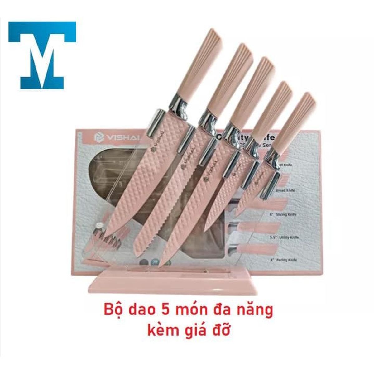 [BỘ DAO 5 MÓN] Bộ dao làm bếp cao cấp 5 món siêu sắc bén, kèm giá đỡ để dao tiện lợi.