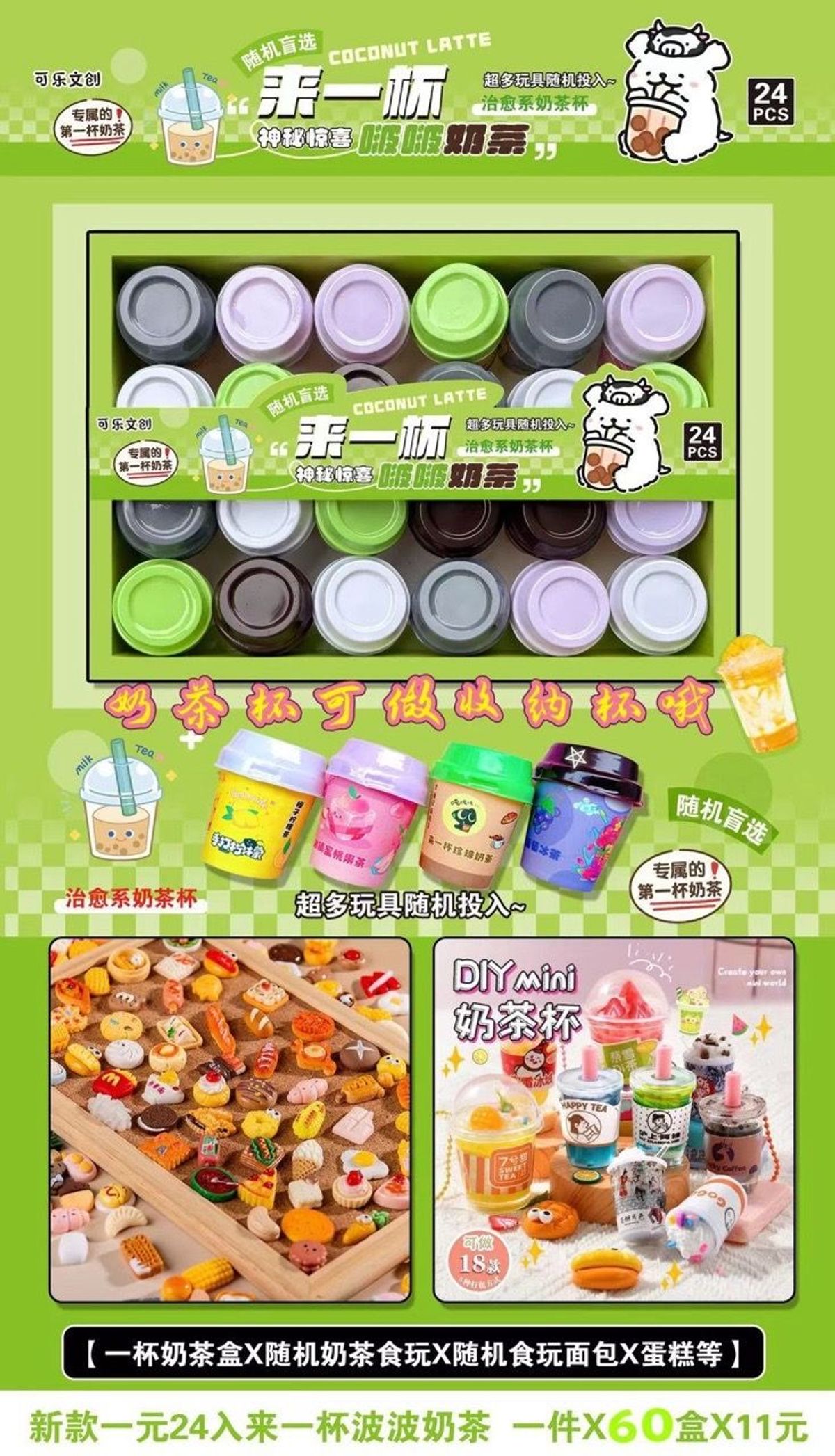 Tùy mỗi ly sẽ có ngẫu nhiên các món: • Đồ chơi mini (kẹo, snack, mì gói, lon nước…) • Phụ kiện dạng mô phỏng • Đồ chơi ly, bình sữa, slime mini, bánh kẹo mô phỏng • Có set đầy đủ: bánh mì, đồ ăn nhanh, đồ uống nhỏ xinh, nhân vật mini