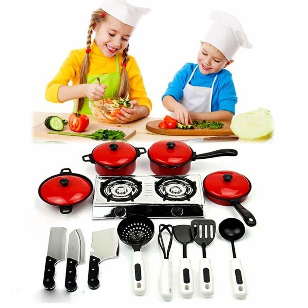 - Bộ đồ chơi nhà bếp cho bé gồm 01 bếp ga đồ chơi, 04 xoong nồi nấu ăn đồ chơi có nắp, 03 dao nấu ăn đồ chơi, 05 dụng cụ nấu ăn đồ chơi, cho bé yêu nhà bạn thêm thích thú.