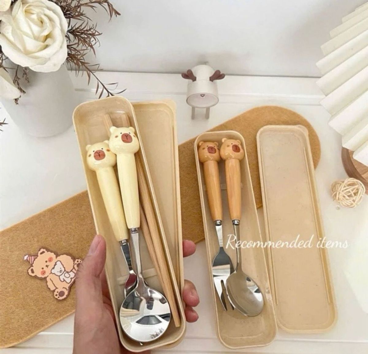 Bộ đũa thìa mang đi inox 304 cán sứ giá sỉ - giá bán buôn