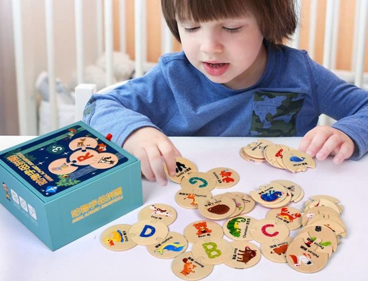 => Sản phẩm được thiết kế khá hay. Có 26 chữ cái Tiếng Anh trên 1 hình tròn gỗ thiết kế lõm 3 góc => Nhiệm vụ của bé là tìm những từ bắt đầu bằng chữ cái bé đang định ghép ghép vào từng nhánh của chữ cái đó. Sau đó bé sẽ đọc tên của từ đó. chính là tên của con vật in trong thẻ đó. Mỗi lần chơi con sẽ nhớ được rất nhiều từ vựng.