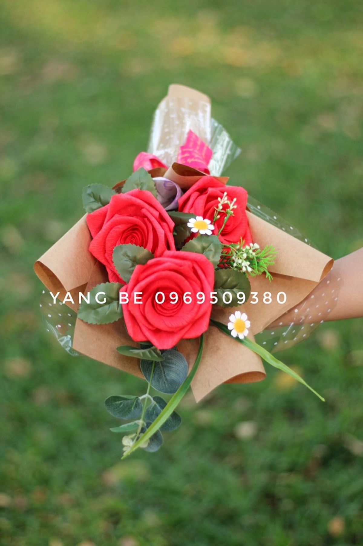 Bó Hoa hồng cánh 3b được làm từ giấy nhún thủ công tỉ mỉ.