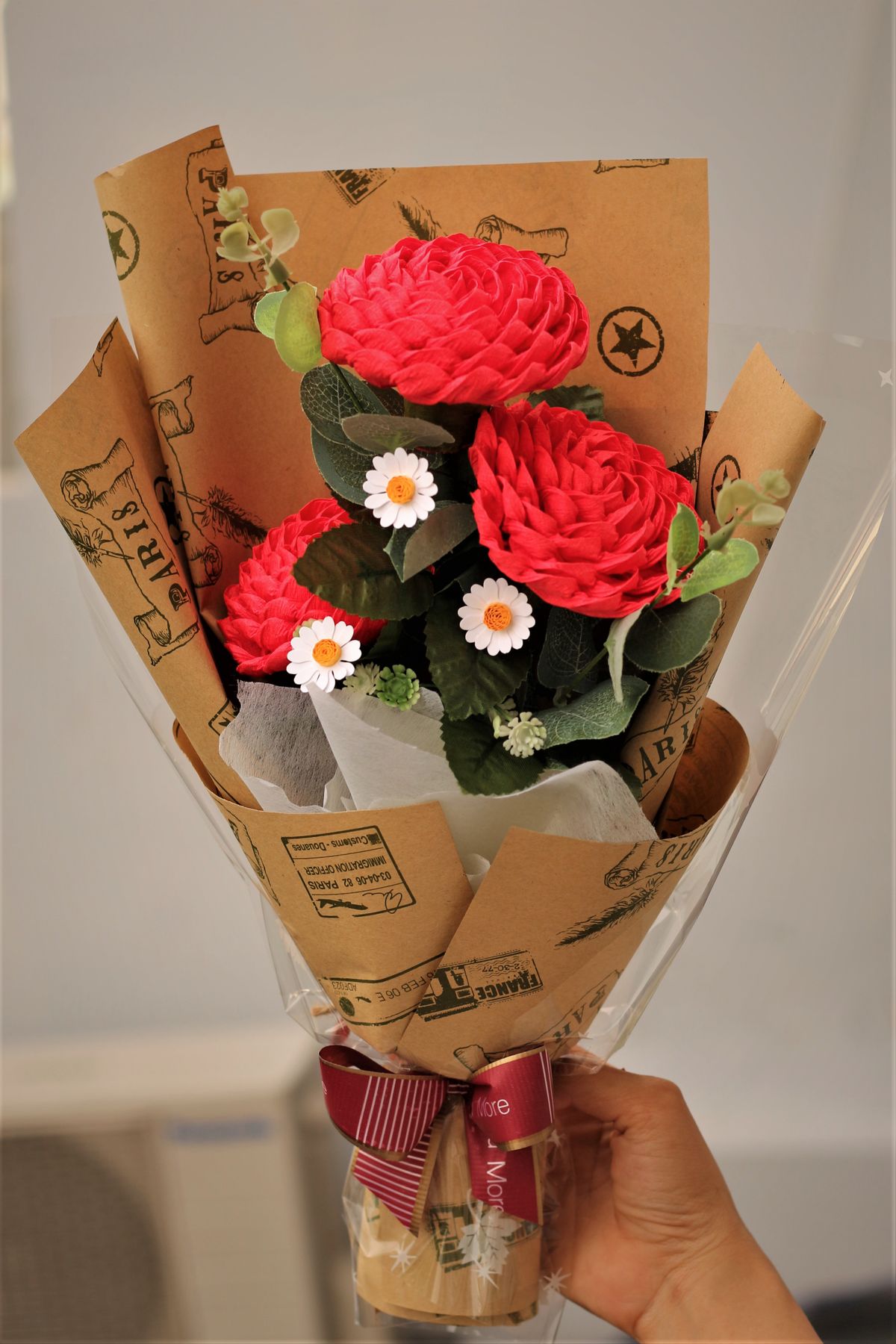 Bó Hoa hồng xoắn 3b được làm từ giấy nhún thủ công tỉ mỉ.