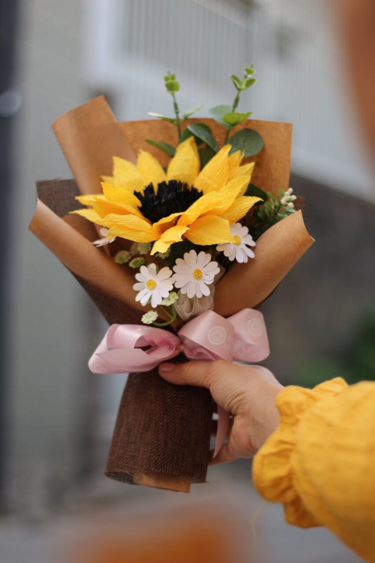 Bó Hoa Hướng Dương được làm từ giấy nhún thủ công tỉ mỉ.