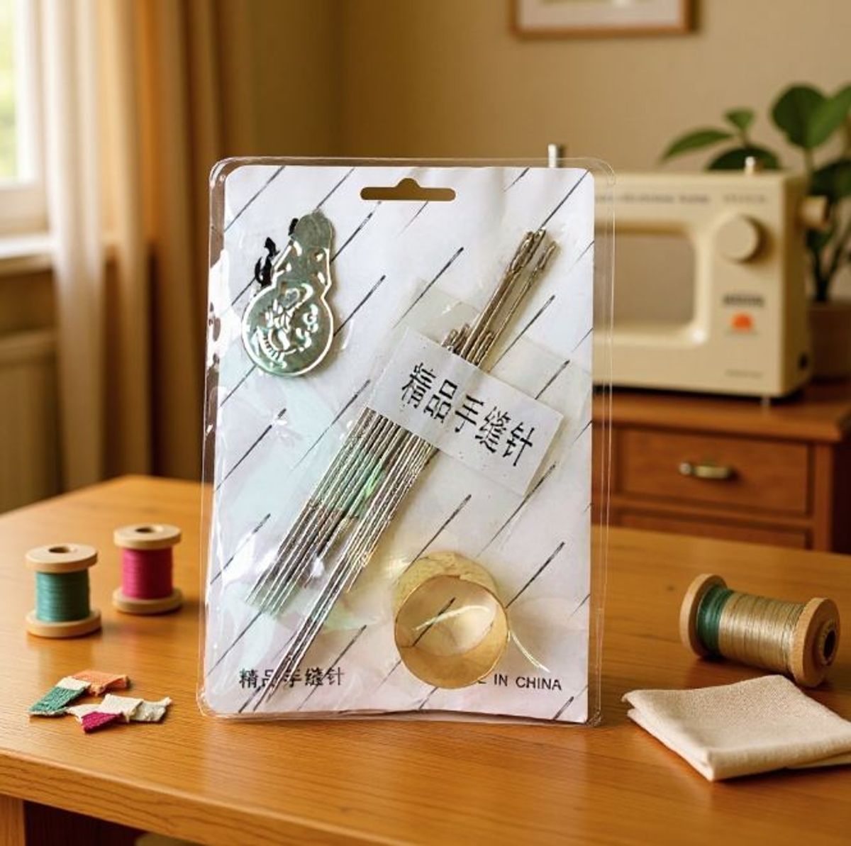 - Bộ sản phẩm được đóng gói sẹp đẹp gồm: kim khâu tay nhiều cỡ, đê khâu bằng