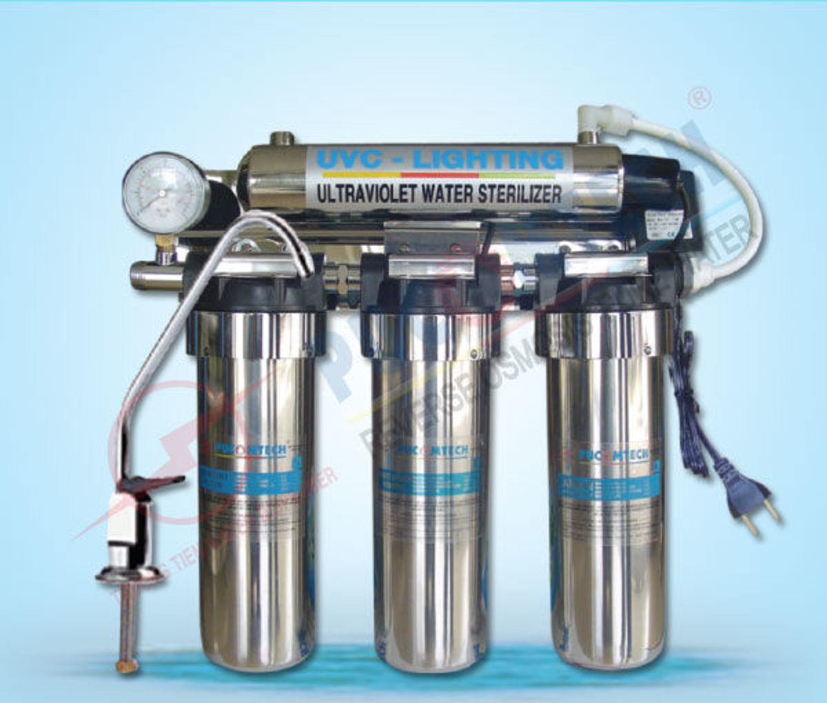 Hệ thống khử trùng:Đèn tia cực tím UV 14W.220V.50HZ, Vỏ inox