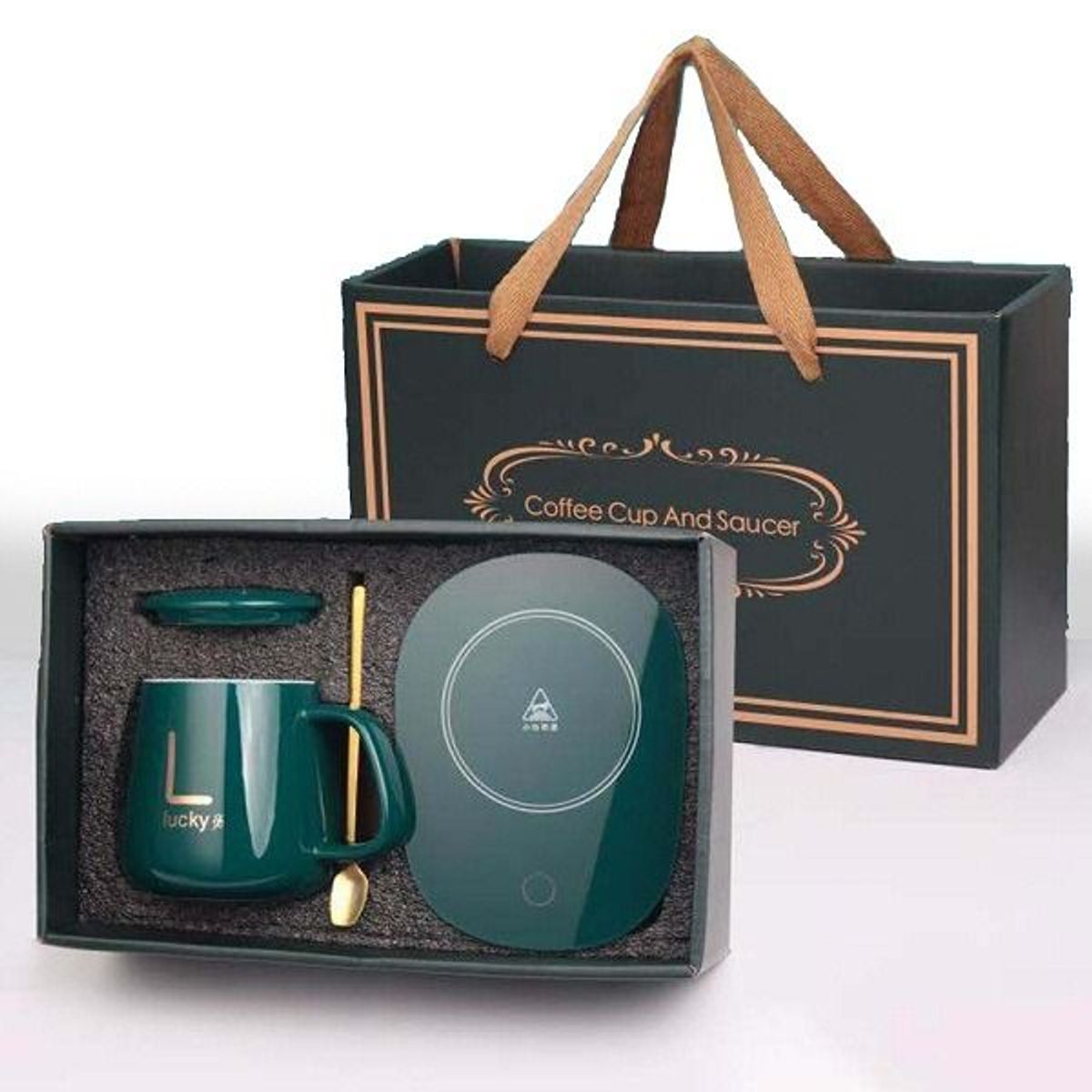 Bộ ly sứ điện hâm nóng Lucky xanh ngọc, Bộ ly sứ điện hâm nóng Lucky xanh ngọc coffee cup and saucer