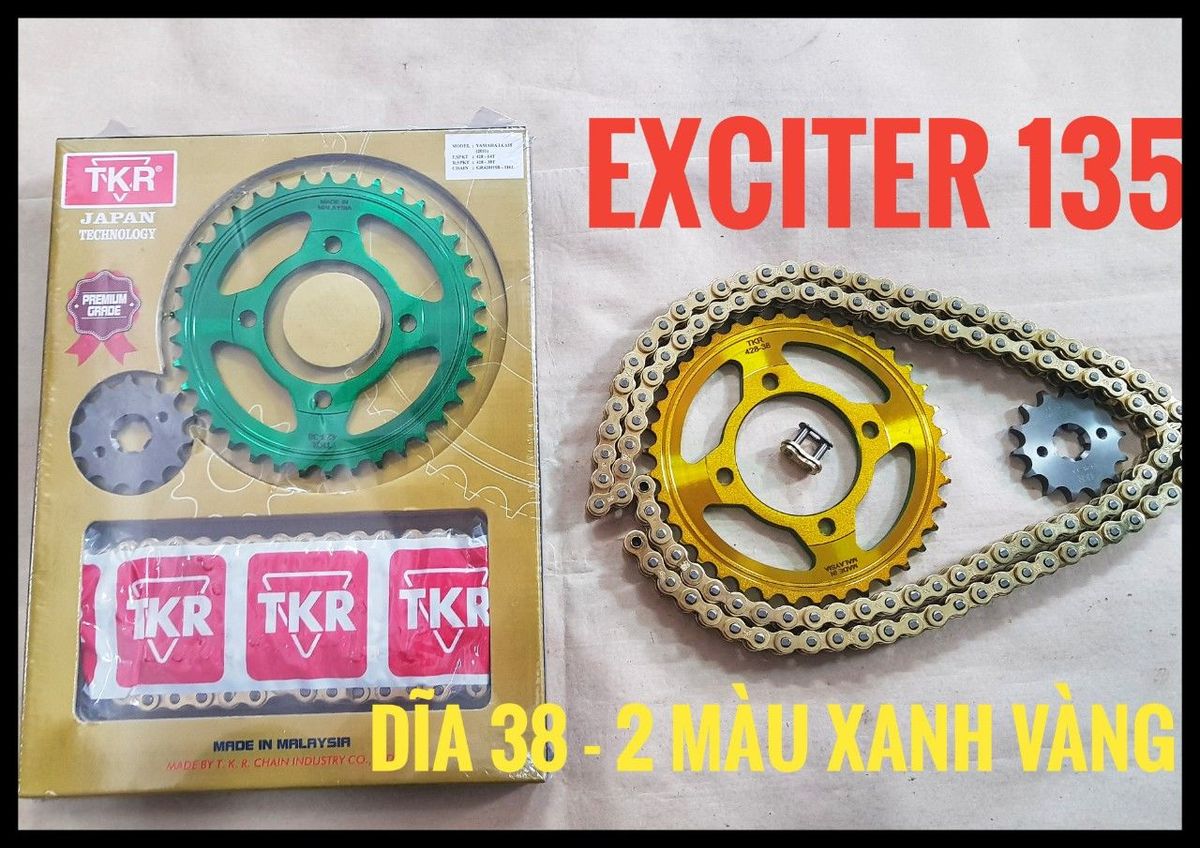 Bộ nhông sên đĩa xe máy hiệu TKR dùng cho xe YAMAHA EXCITER 135cc với nguyên liệu thép S50C, độ bền cao, sên được mạ lớp Titanium
