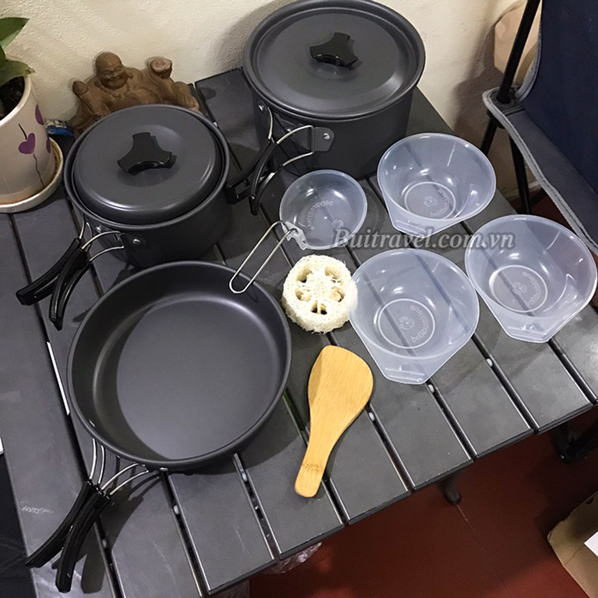 Bộ nồi Trackman có đủ các vật dụng thiết yếu để nấu ăn khi đi du lịch ngoài tời, thiết kế xếp gọn nên sẽ tiện mang theo trong các chuyến đi xa