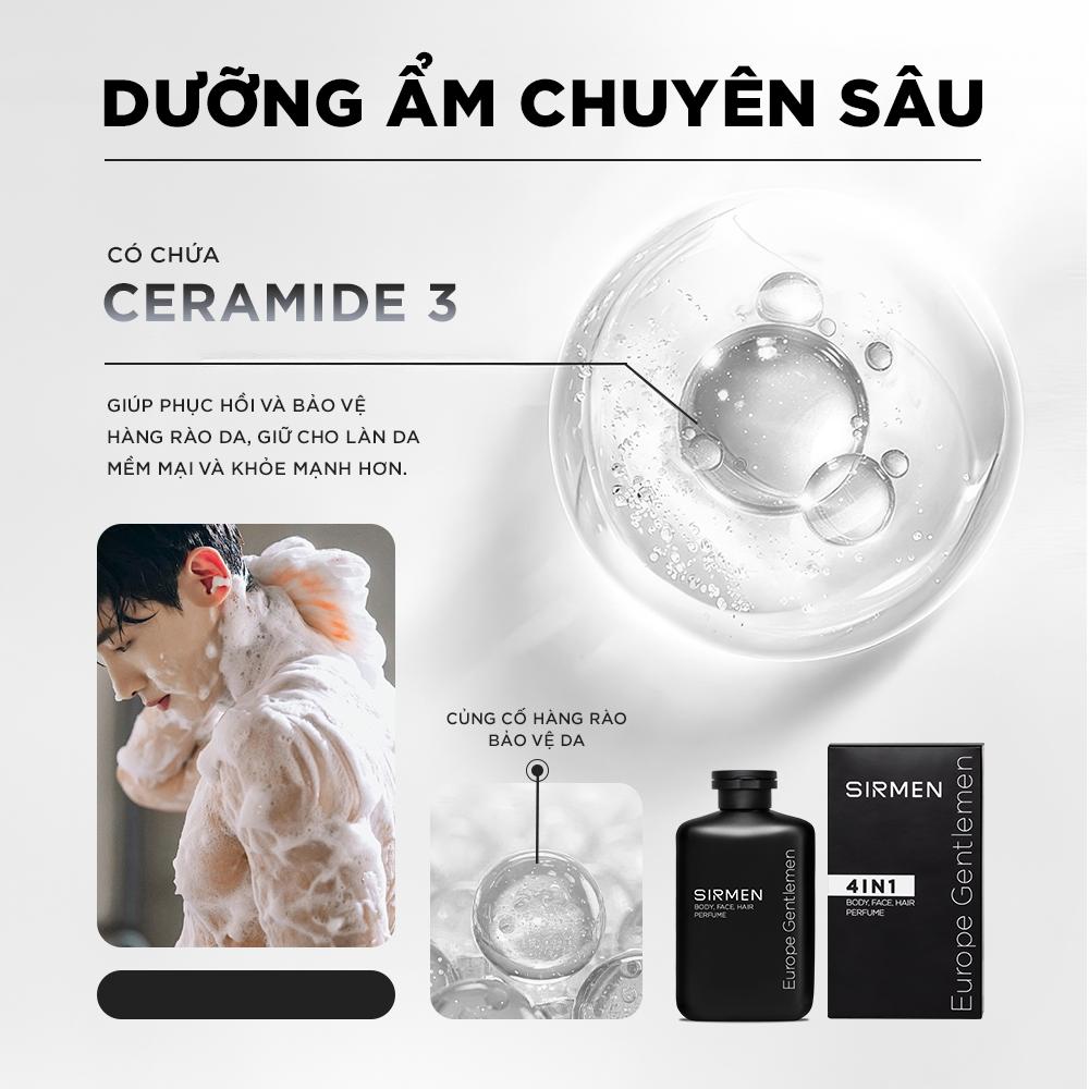 Sữa tắm gội nam 4 in 1 hương nước hoa châu Âu SIRMEN Europe Gentlemen 350g chiết xuất cao cấp công nghệ tiên tiến