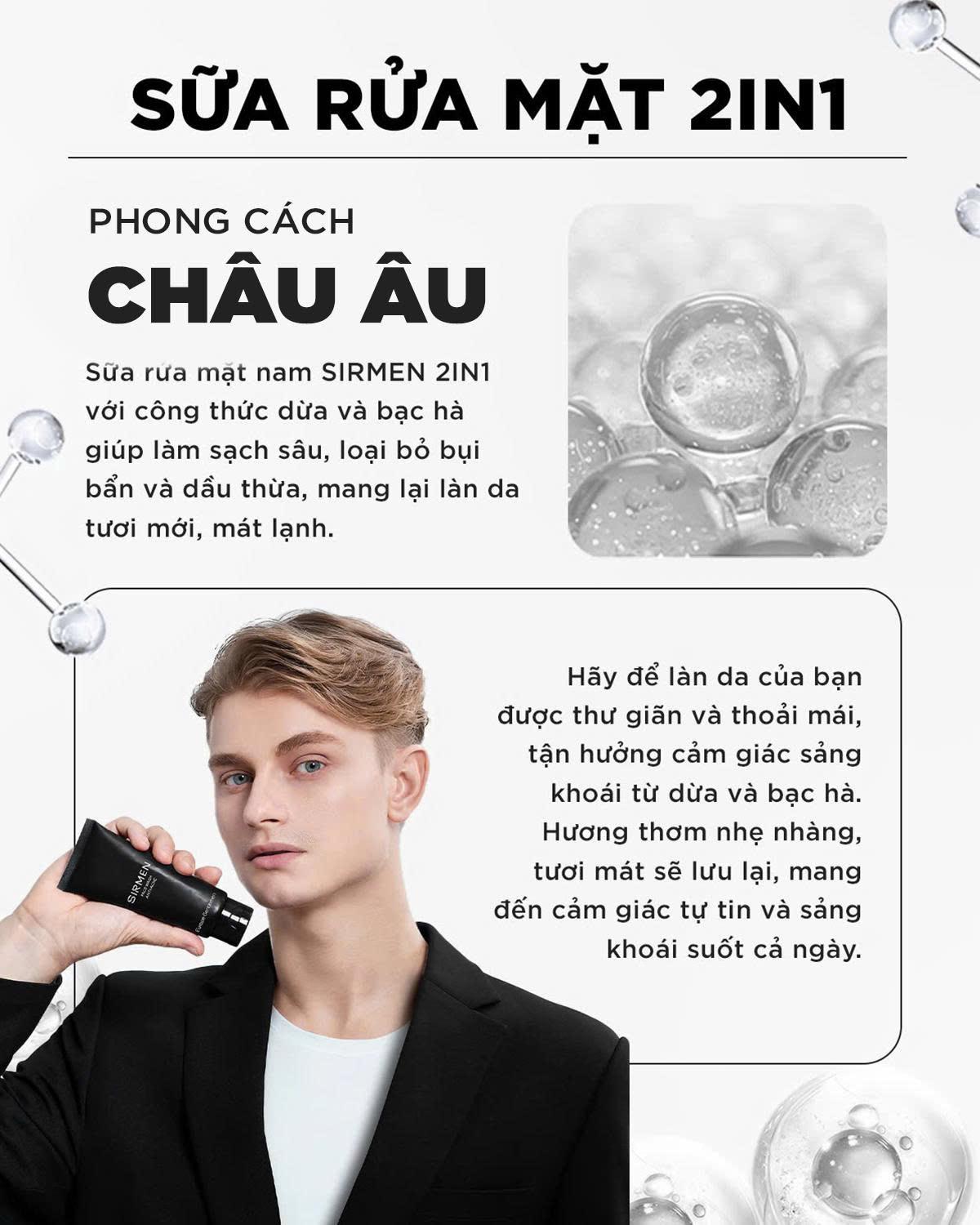 Sữa rửa mặt nam 2 in 1 nguyên liệu châu Âu SIRMEN Europe Gentlemen 100g chiết xuất cao cấp công nghệ tiên tiến