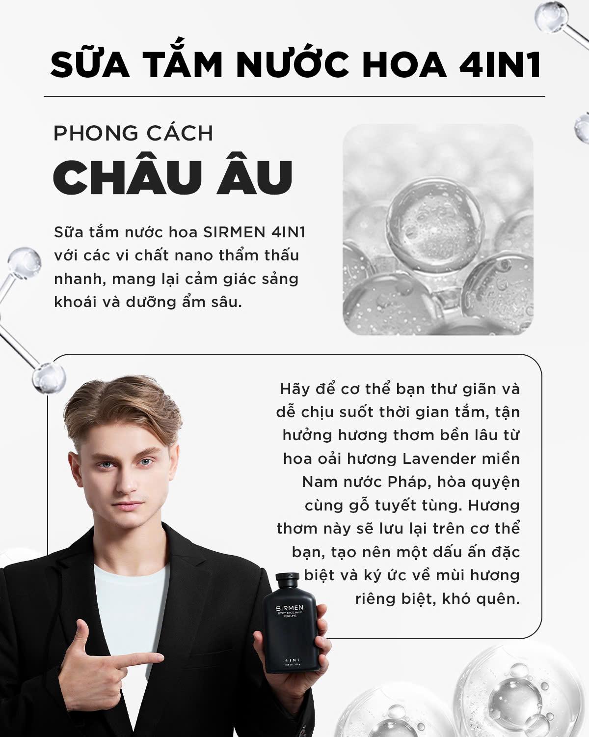 Sữa tắm gội nam 4 in 1 hương nước hoa châu Âu SIRMEN Europe Gentlemen 350g chiết xuất cao cấp công nghệ tiên tiến