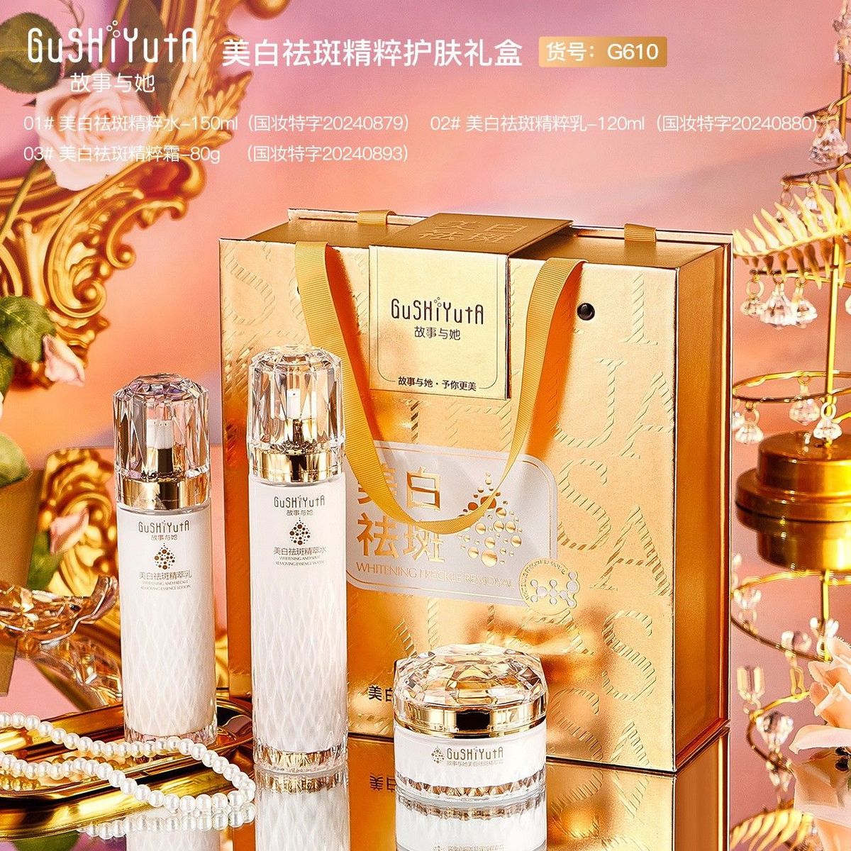 Bộ Quà Tặng Dưỡng Trắng Da GuShiyuta – Nước Hoa Hồng, Sữa Dưỡng, Kem Dưỡng Mờ Nám Tàn Nhang giá sỉ - giá bán buôn