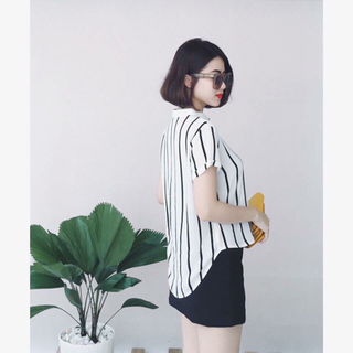 Bộ set sơ mi sọc chân váy hình giá sỉ/bán buôn