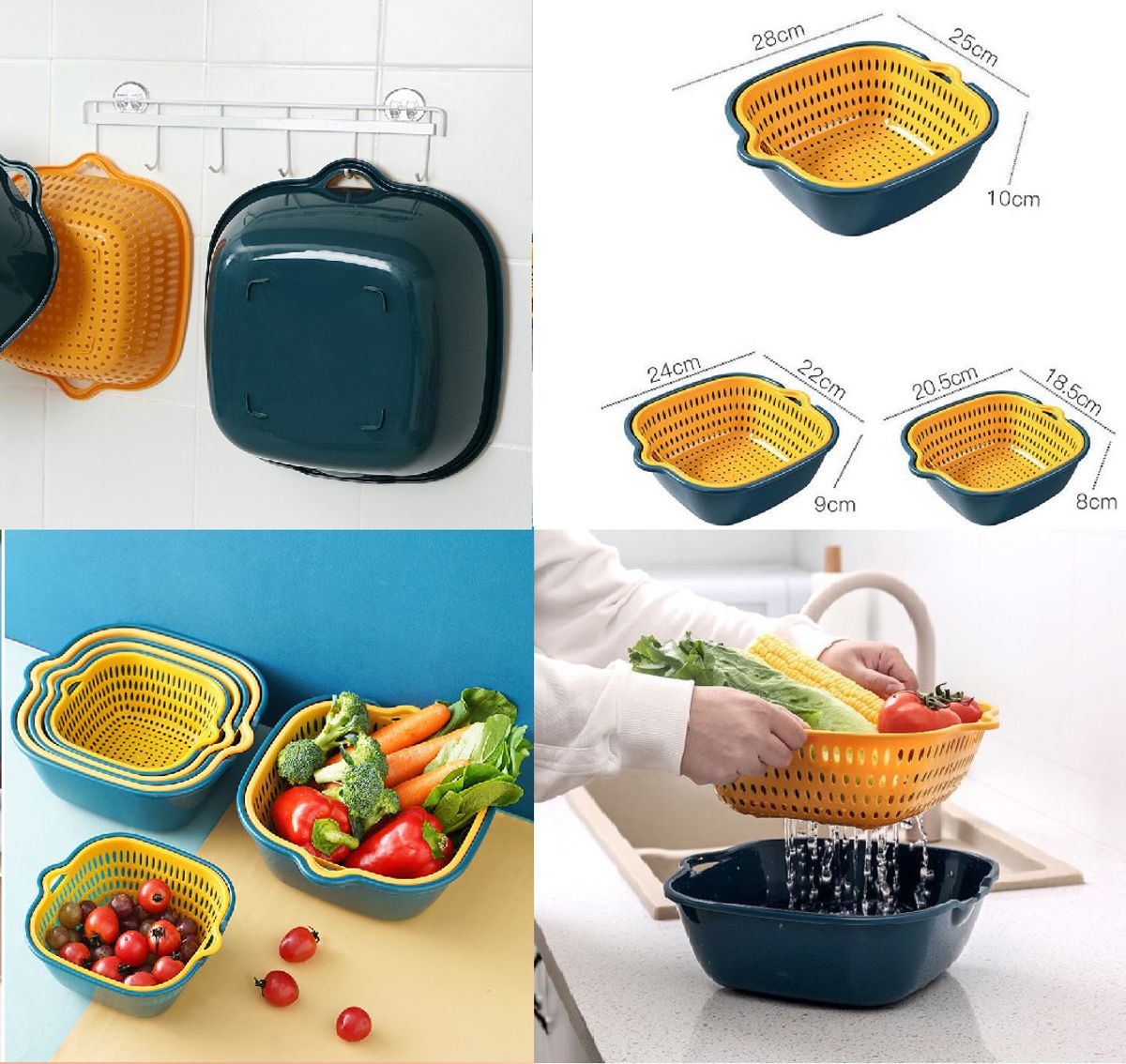 • Kết hợp 2 loại rổ thành một đôi, một chiếc có công dụng để ráo, 1 chiếc để đựng nước, mang lại hiệu quả mỗi khi ngâm, rửa