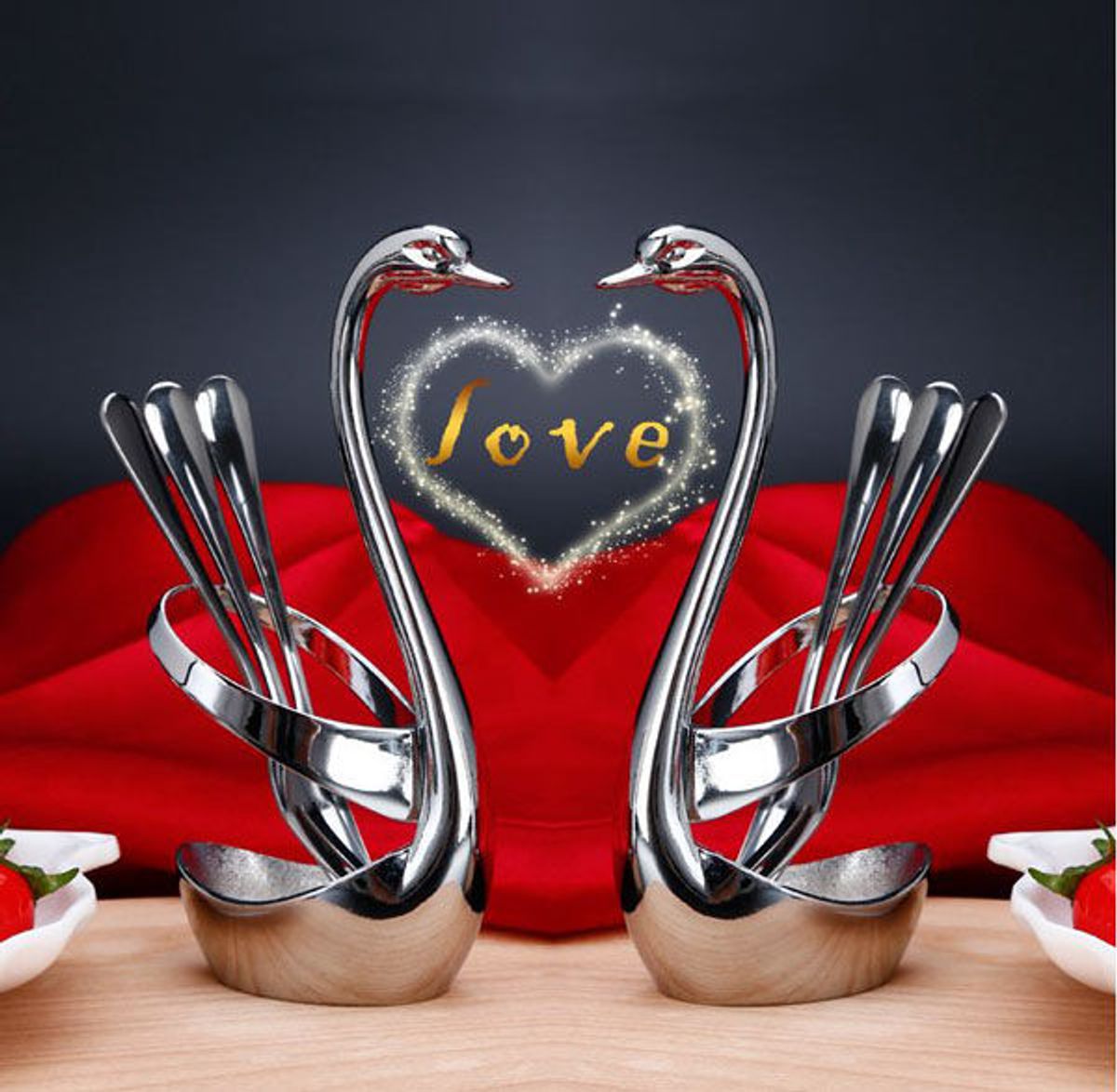 Bộ thìa dĩa và ống đựng Thiên Nga