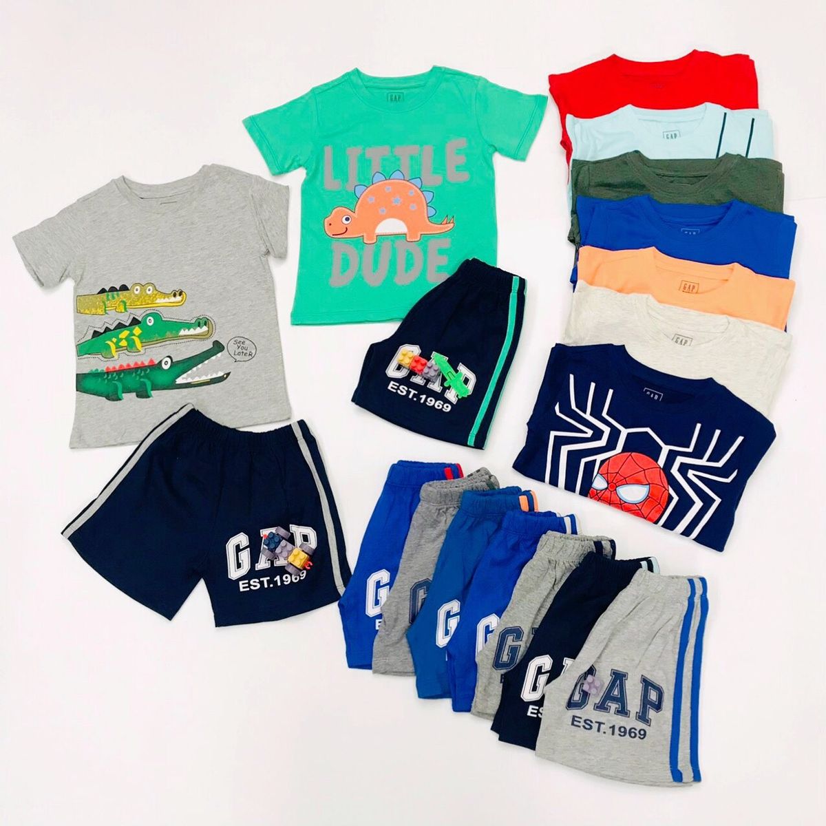 Bộ thun ngắn tay bé trai Gap, size 1-5 (10-22kg) (chữ Gap chụp đã bị che lại 1 phần), size 1-5, hàng made in VN, vải cotton 2 chiều xuất dư mềm mát, hình in sắc nét, ko bong tróc