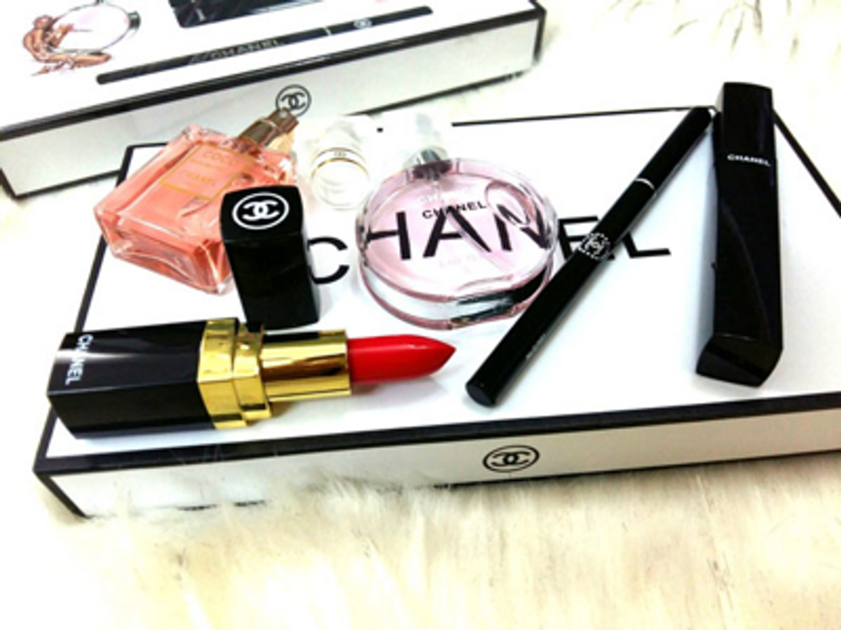 Bộ quà tặng mỹ phẩm Chanel 5 món. Kiểu dáng sang trọng, thiết kế hiện đạiNước hoa sang trọng hương thơm nồng nàng, say đắm, mang đến phái nữ sự tự tin, quyến rũ mỗi ngày. Thiết kế chai nhỏ gọn, xinh xắn, bạn thoải mái mang theo bên mình để thay đổi mỗi ngày.Son: được thiết kế cực kỳ thanh lịch và sang trọng, màu sắc trang nhã tô điểm cho đôi môi nổi bật thu hút mọi ánh nhìn, son có độ bao phủ cao, độ bám tốt, giàu chất dưỡng và màu son lên môi chuẩn xác, không nhạt màu, không bợt môi và đặc biệt không gây cảm giác bết dính hoặc bong trócMascara: một sản phẩm của Chanel đem đến cho bạn phong cách chuốt mi khác biệt, và vô cùng dễ dàng tăng độ dầy, độ dài và cong cho mi mắt của bạn.Thiết kế cọ đặc biệt cho hàng mi dầy hơn và chia đềuChì kẻ mắt: giúp đôi mắt của bạn hiện to hơn, & cân đối hơn, cho đôi mắt thêm sâu và cuốn hút Dòng mỹ phẩm với thành phần an toàn không gây kích ứng da Món quà ý nghĩa để bạn dành tặng những người phụ nữ thân thương.Bộ mỹ phẩm bao gồm: