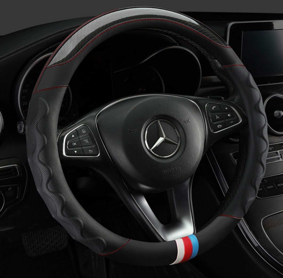 Bọc vo lang ô tô thể thao - da vân carbon phối da nhiều màu phù hợp với size 38cm Dùng cho xe 4 chỗ - 7 chỗ , bán tảI