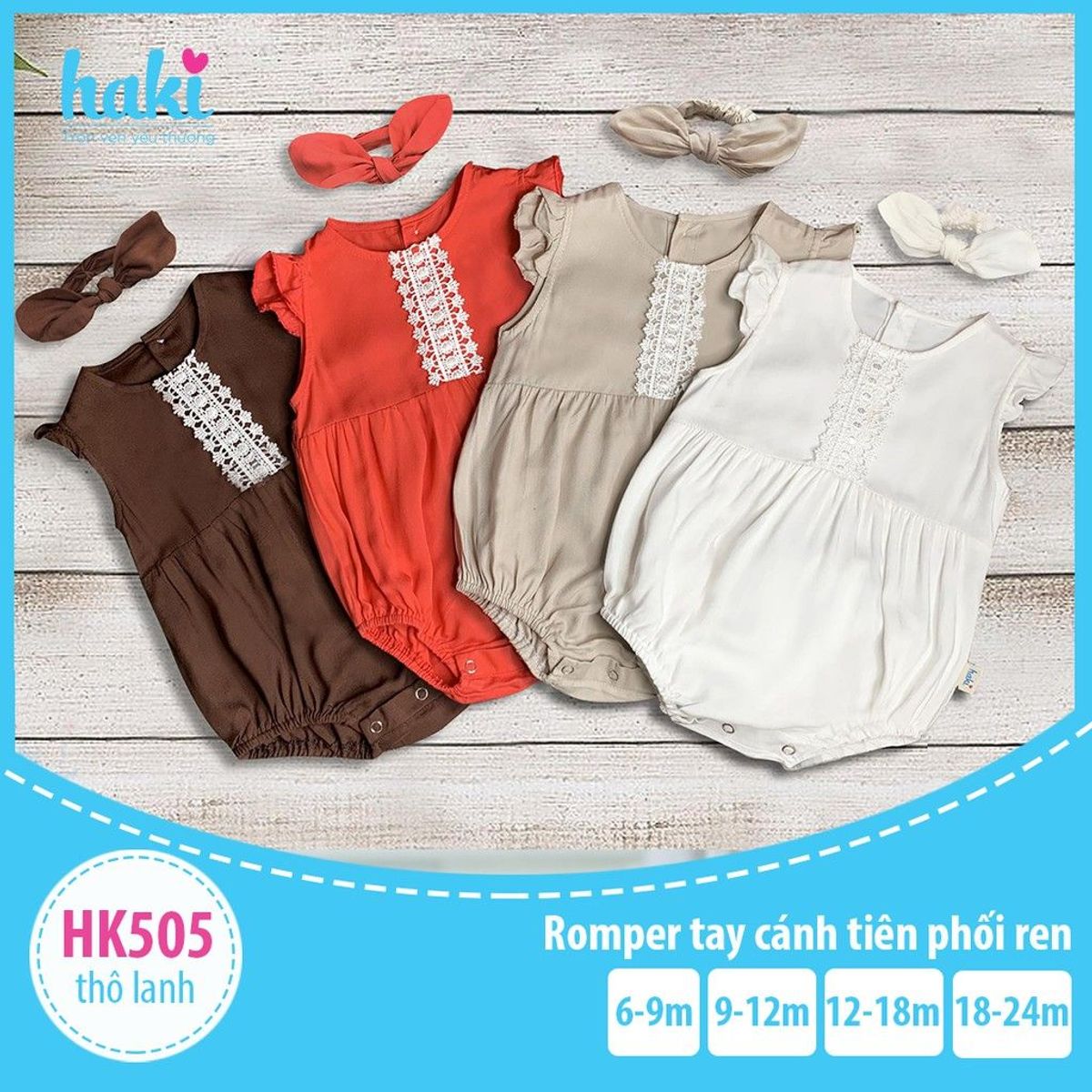 Bộ body tay cánh tiên phối ren của Haki với thiết kế khỏe khoắn kết hợp cùng chất vải thô lanh mềm mại, thấm hút mồ hôi. Kiểu body với khuy bấm phần đũng quần nên mẹ dễ dàng mặc cũng như thay bỉm cho trẻ mà không cần phải cởi toàn bộ body.