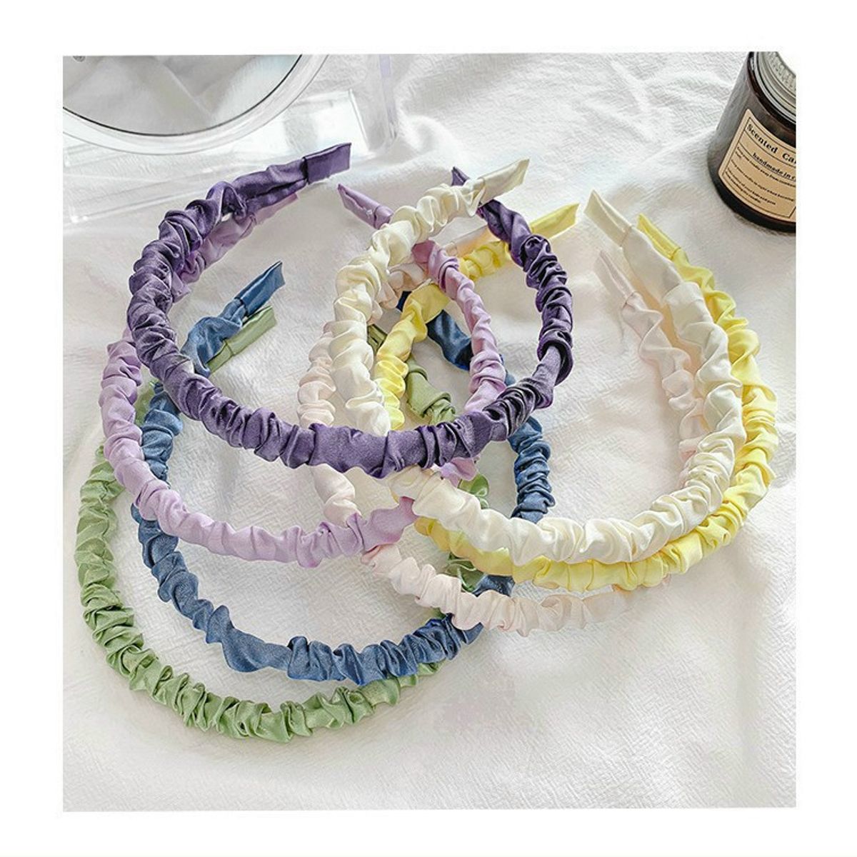 Băng Đô Bờm Cài Tóc Vải Nhúng Rút Nhún Bèo Kẹo Màu Ngọt Ngào Kèm Đáng Yêu