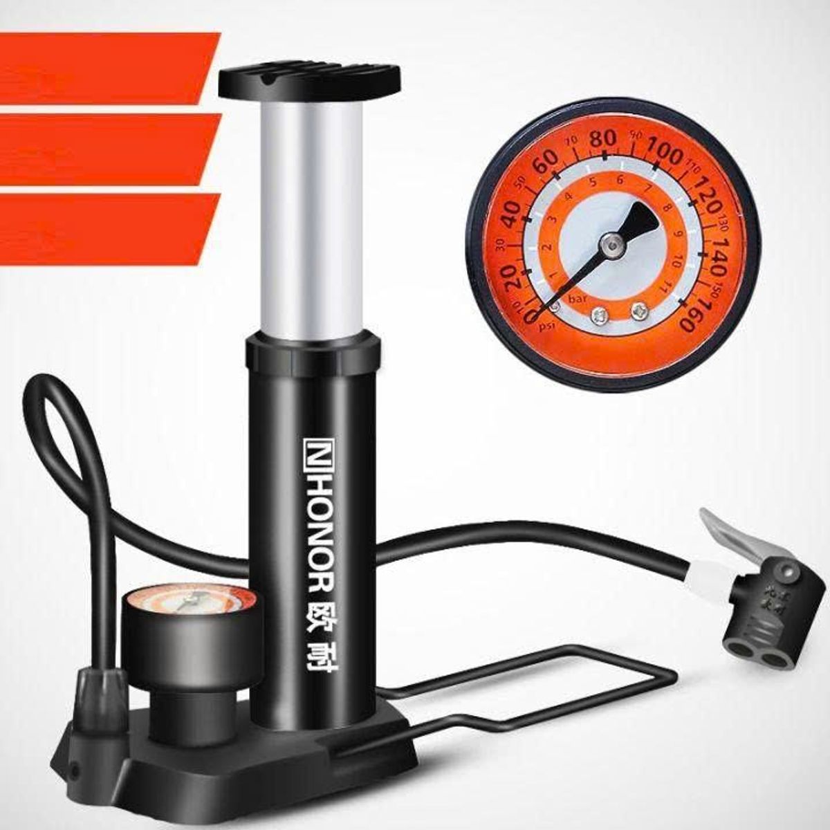 Bơm hơi dùng chân cho xe NHONOR giúp bơm khỏe hơn, tiết kiệm thời gian hơn