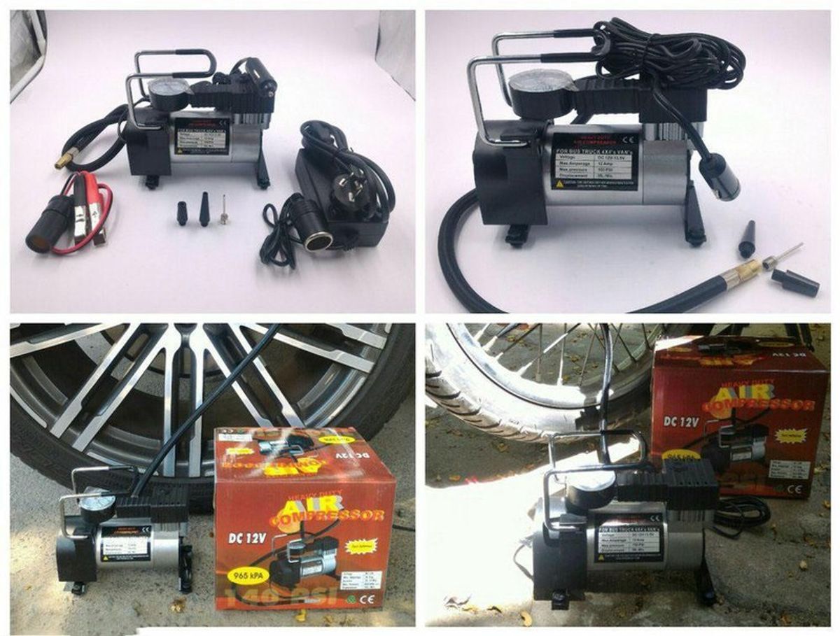 Thông số kĩ thuật Máy Nén Bơm Lốp Ô Tô Xe Máy 12VDC 965 KPA: -Áp lực nén tối đa: 100 PSI ≈ 7 kg/cm³ -Đường kính Xilanh: 32 mm -Chu kỳ hoạt động: 12 - 15 phút -Chiều dài dây dẫn điện: 3 m -Chiều dài ống bơm: 0.6m -Trọng lượng: 1.29 Kg -Lưu lượng: 35L/phút -Phụ kiện kèm theo: 3 đầu kim bơm -Màu sắc: Bạc đen Hướng dẫn sử dụng Máy Nén Bơm Lốp Ô Tô Xe Máy 12VDC 965 KPA: Bước 1: Cắm đầu dây vào ổ châm thuốc lá trên ôtô. Bước 2: Bật công tắc xe nên cho xe nổ máy khi bơm hơi. Bước 3: Để máy bơm gần lốp cần bơm, mở van lốp xe, khởi động máy bơm hơi. Bước 4: Lắp vòi bơm vào van, theo dõi đồng hồ trên mặt máy bơm để bơm đủ và kết thúc đúng lúc. Bước 5: Tắt máy bơm, đóng van lốp xe. Bước 6: Rút dây nguồn, cất máy bơm vào trong túi