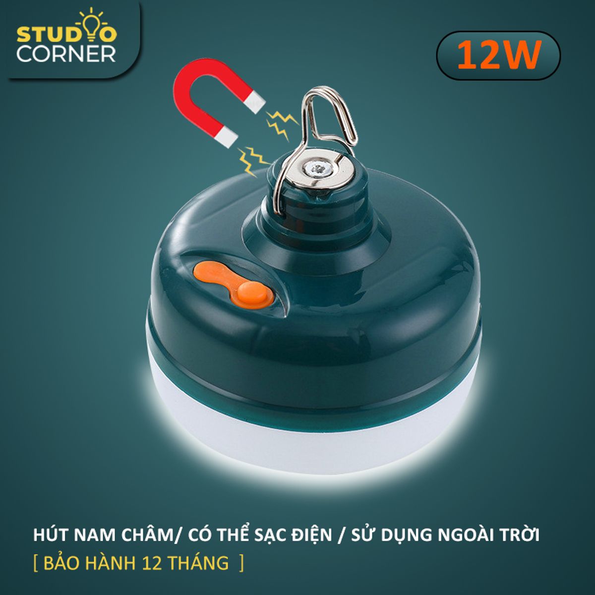 Bóng đèn LED sạc tích điện, đèn led sạc pin ánh sáng trắng, có đế hít nam châm, móc treo kèm theo, bóng đèn gia dụng ánh sáng trắng, chống thấm nước, công suất 12W HL145
