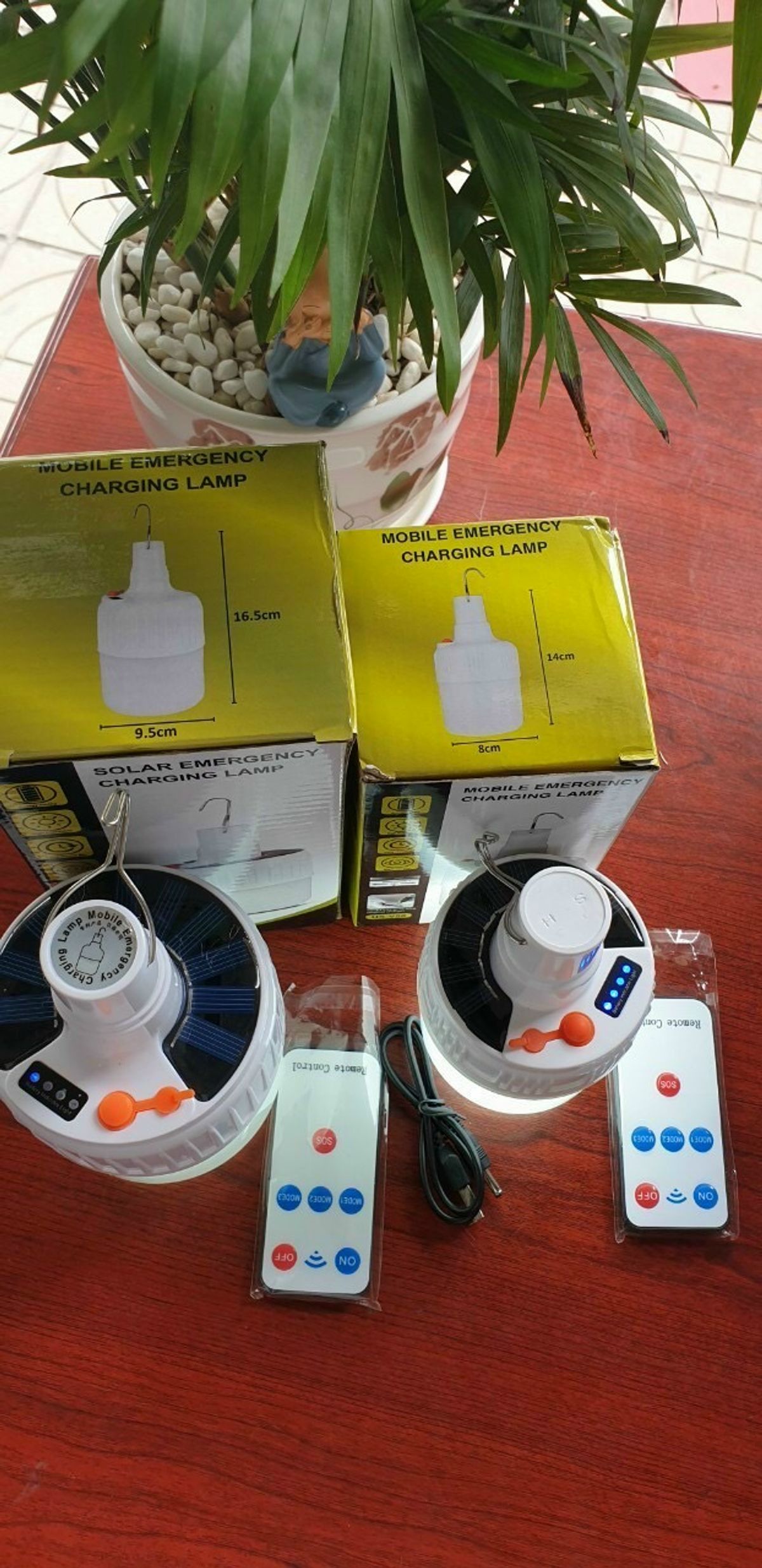 Bóng đèn tích điên 100W có remote điều khiển và tấm pin năng lượng mặt trời