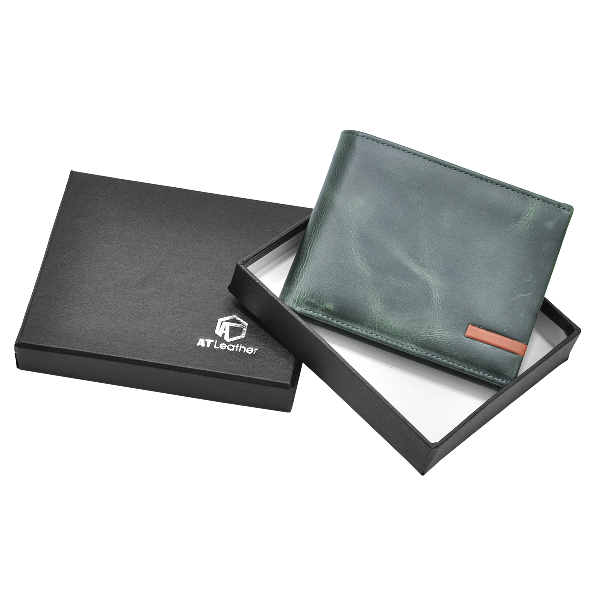 Bóp ví nam da bò AT063 màu rêu - Ví ngang da bò thật 100%