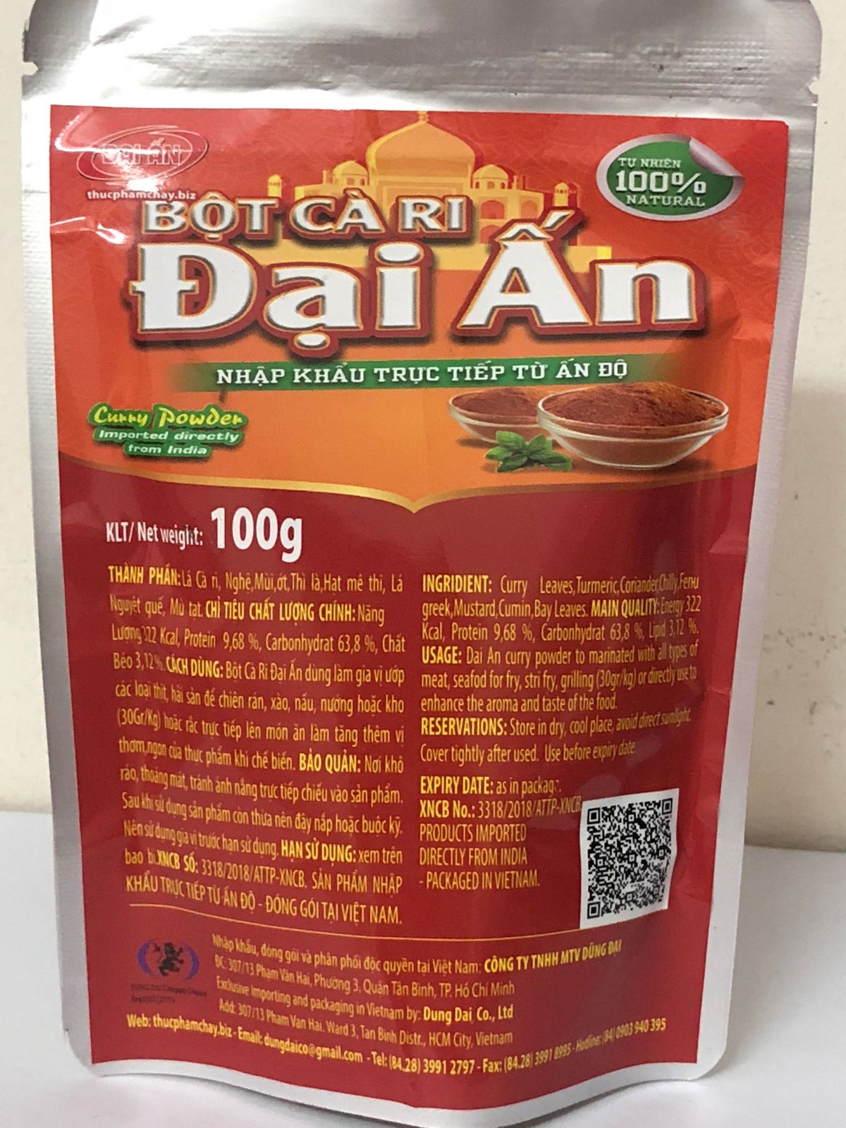 Bột Cà Ri trực tiếp từ Ấn Độ với hương vị đặc trưng của Cà Ri chuẩn.