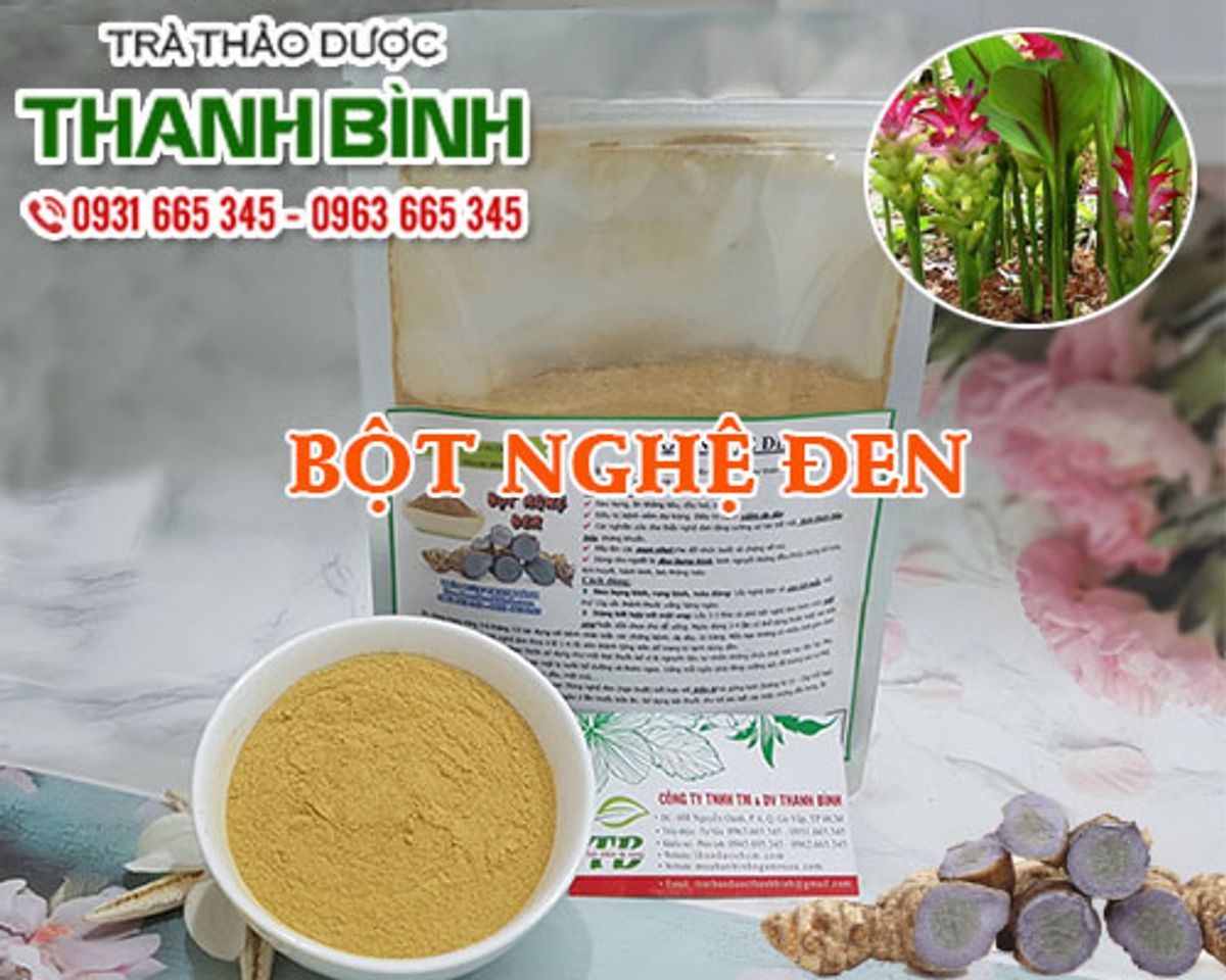 Theo Đông y bột nghệ đen có vị đắng, cay, tính ấm, quy vào kinh Can, Tỳ, Phế, túc Quyết âm Can. Nghệ đen có công dụng hành khí, phá huyết, trị ứ kinh, khí trệ, tiêu tích do chấn thương, hóa thực.
