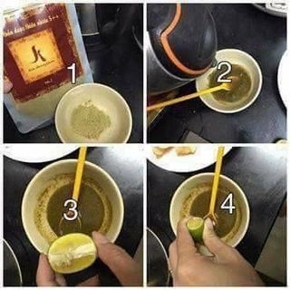 Đối với những ai muốn khử mùi cơ thể : Pha 2 muông bột + 1/2 nước cốt qả chanh + 70ml nước. Tắm mỗi ngày nhé.