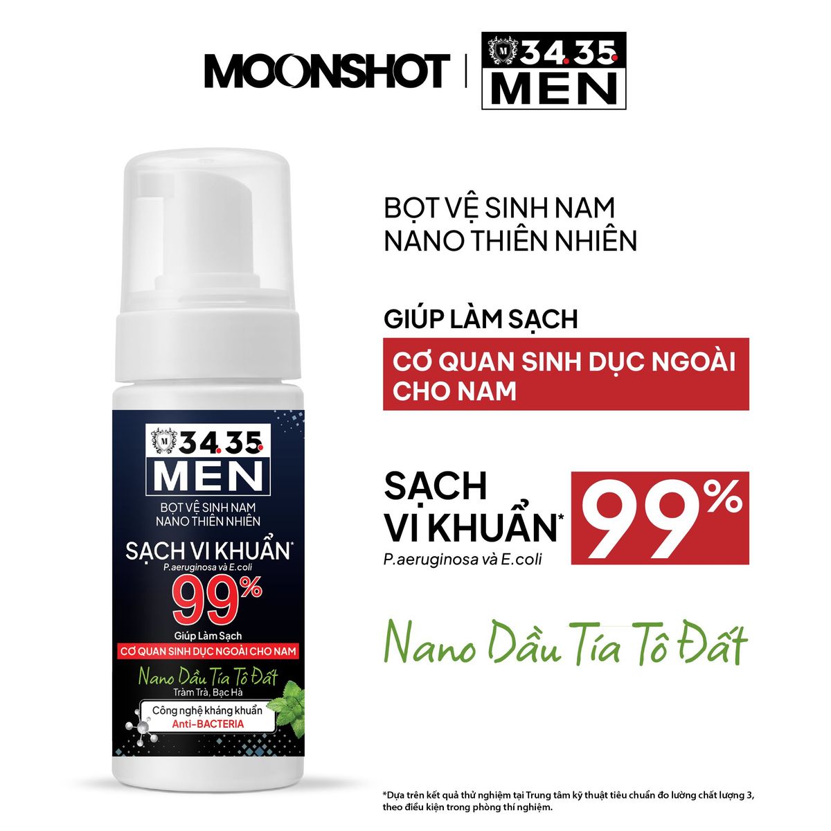 Bọt Vệ Sinh Nam Nano Thiên Nhiên 3435 MEN là sản phẩm giúp làm sạch cơ quan sinh dục ngoài cho Nam - SẠCH VI KHUẨN 99%*, góp phần ngăn ngừa vi khuẩn gây viêm nhiễm, nấm ngứa với Công nghệ khá.ng khuẩn Anti-Bacteria đ ộ c q u y ề n lần đầu tiên được áp dụng.