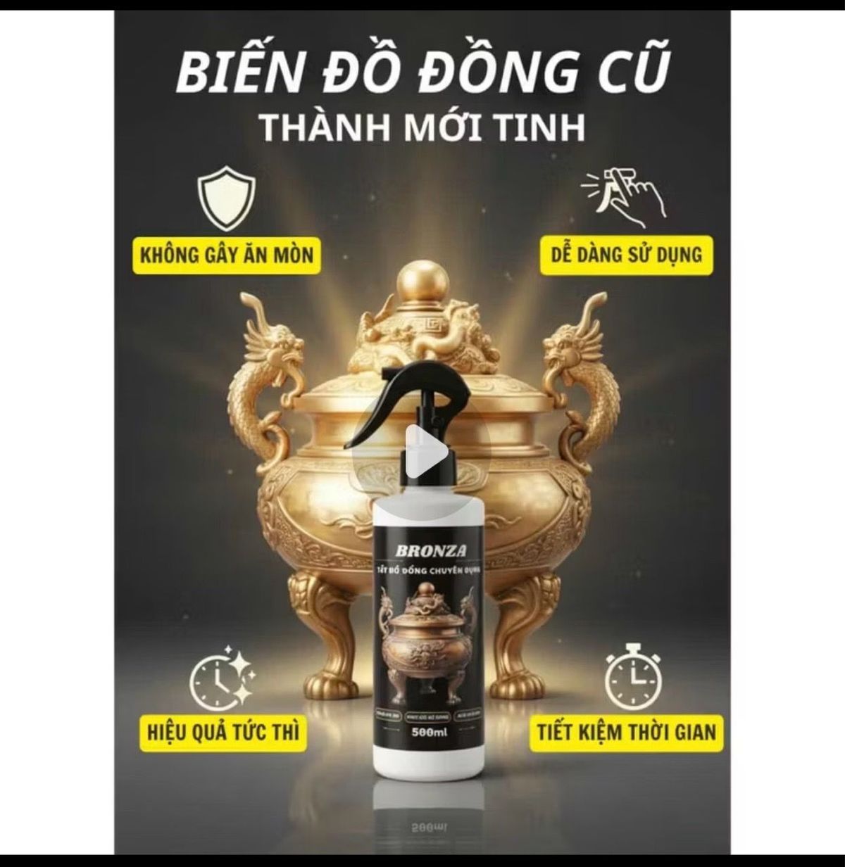 $ Cảnh báo: Dung Dịch Vệ Sinh, Đánh Bóng Đồ Đồng Sáng Bóng BRONZA 500ml - Giúp Làm Sạch Vết Bẩn, Gỉ Sét Trên Đồng