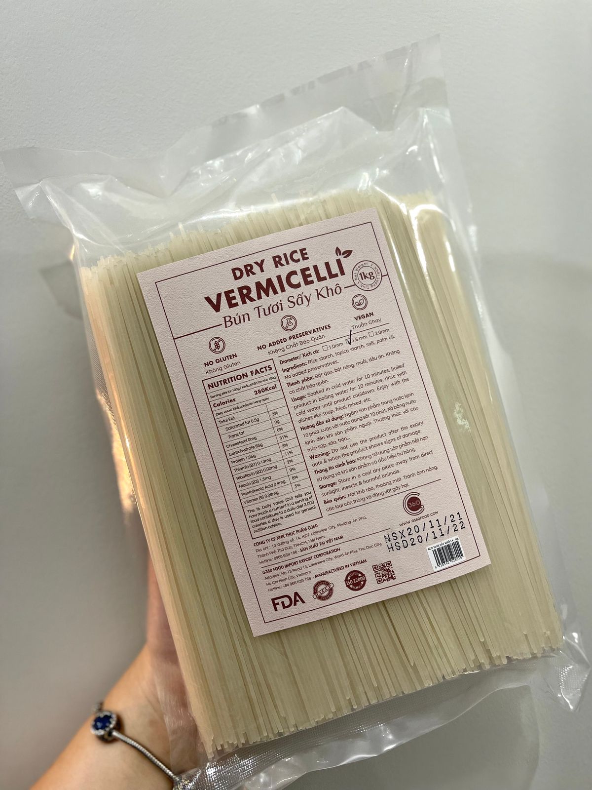 Thành phần: sản phẩm được sản xuất từ bột gạo, bột năng, muối, dầu ăn
