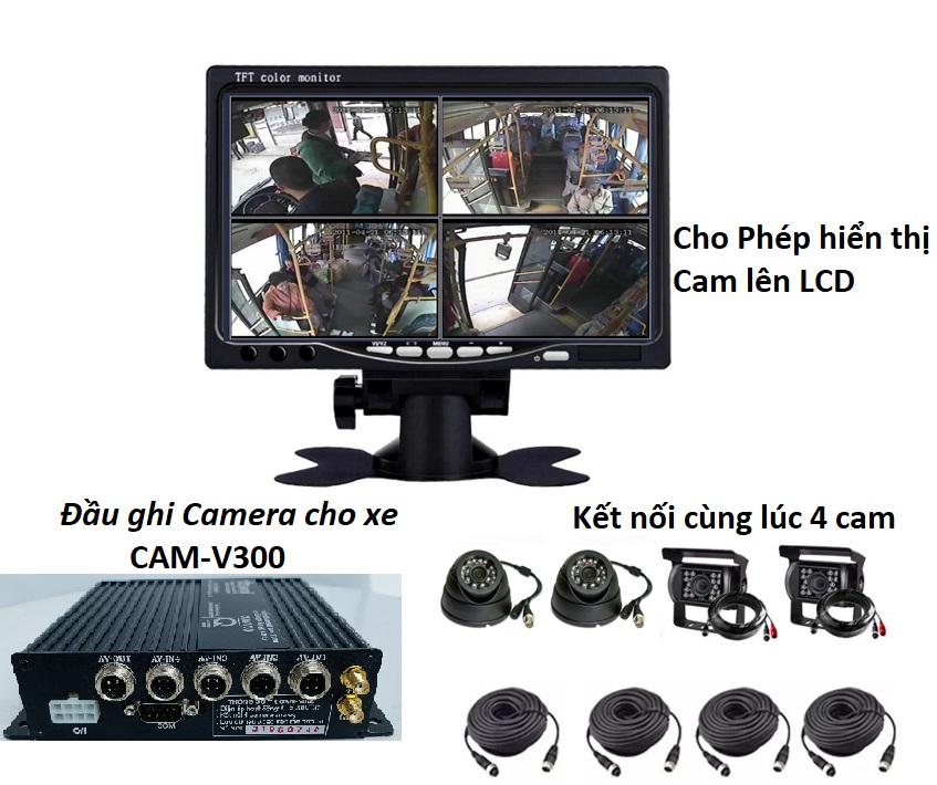 Thông số chung của thiết bị Camera hành trình hợp quy – CAM-V300:– Đầu vào: Tối đa 4 kênh video 1080p/720p/Camera Analog