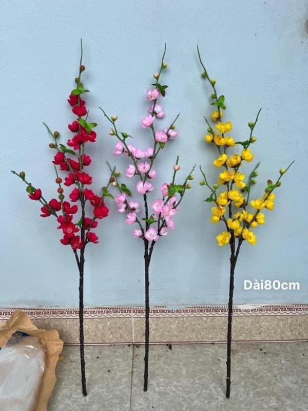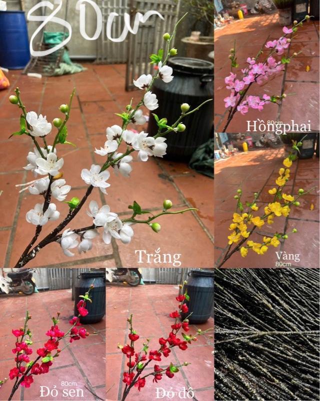 Cành Đào Cổ Nhật , Thân Mốc cao 80cm hoặc là 1,1m . Hoa Vải Lụa Cao Cấp