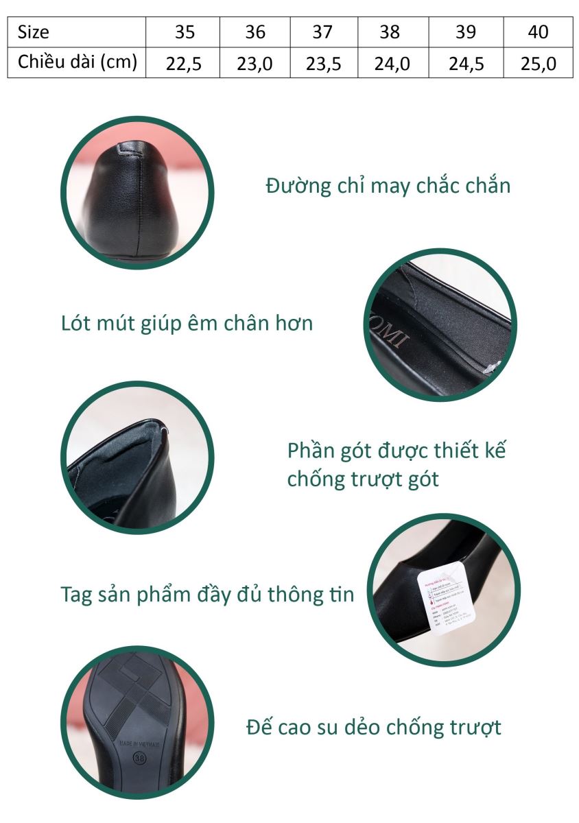 - Ưu điểm nổi trội của mẫu Cao Gót Công Sở Viền SY0609H là trọng lượng rất nhẹ chỉ 400gr, giúp người mang thoải mái trong từng bước chân