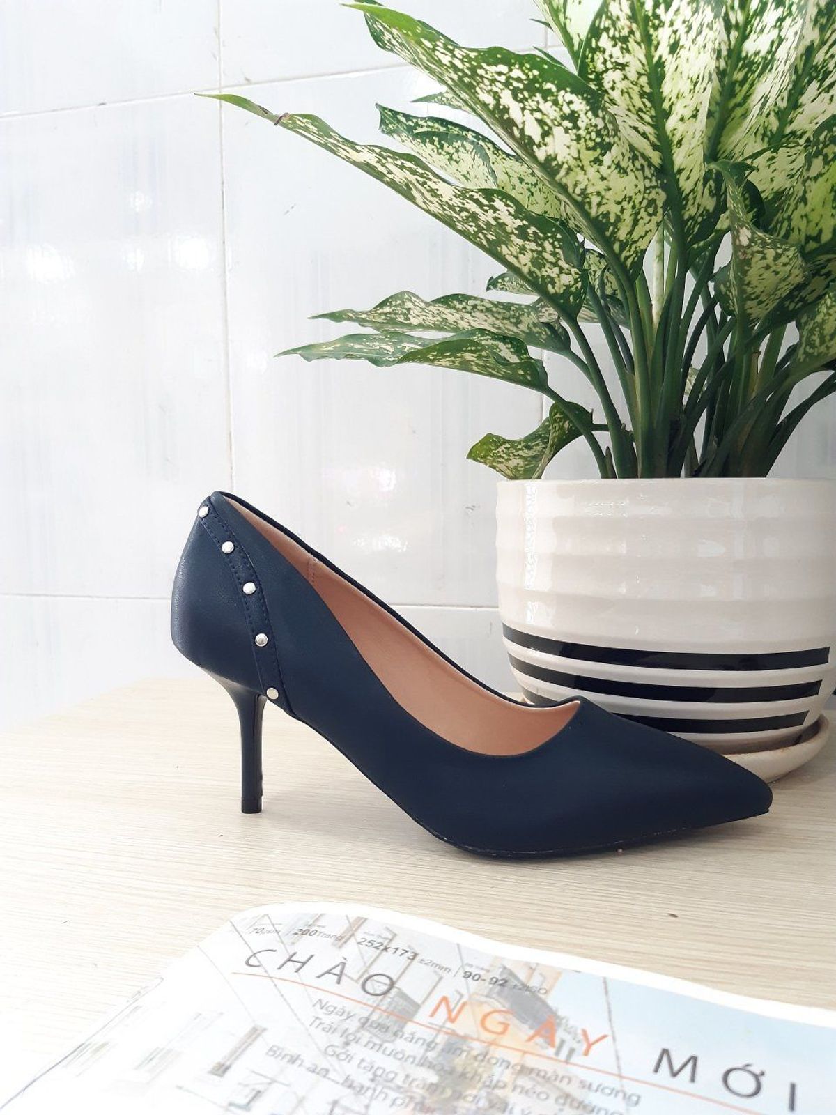 Mẫu cao gót mũi nhọn với thiết kế viền hạt sang trọng. Mẫu có nhiều tone màu đem lại sự đa dạng cho khách hàng.