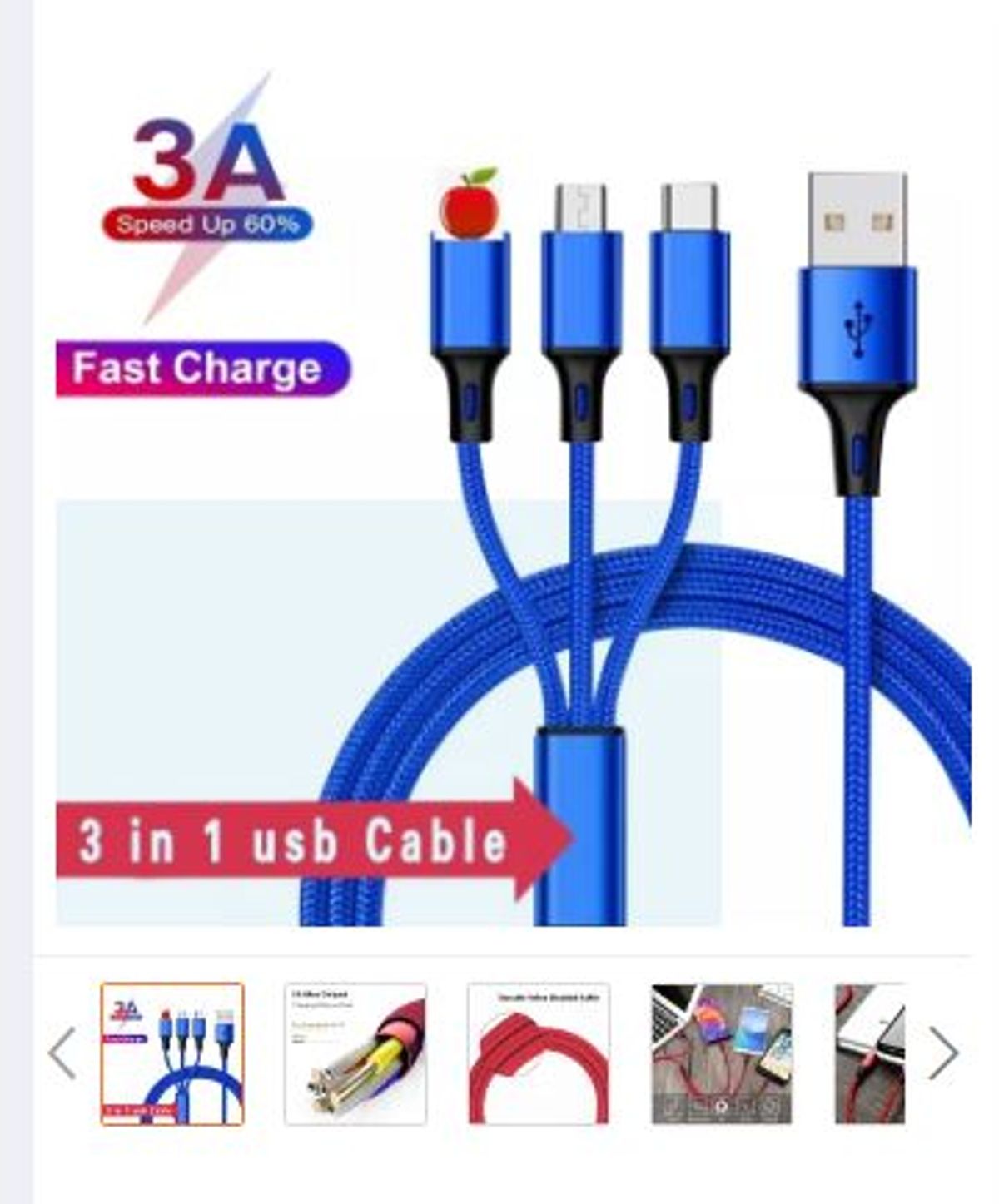 CÁP 3 ĐẦU DÀI 1M2 DAY TO 3A DÂY DÙ giá sỉ - giá bán buôn
